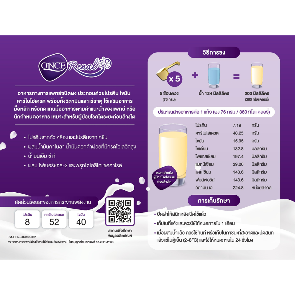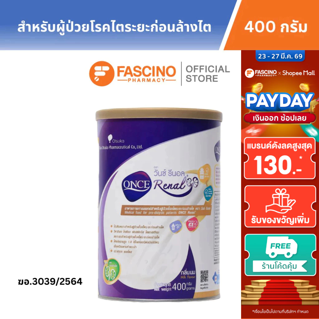 Otsuka ONCE Renal วันซ์ รีนอล กลิ่นนม อาหารสูตรสำหรับผู้ป่วยโรคไต ระยะก่อนล้างไต โภชนาการครบถ้วน 400 กรัม