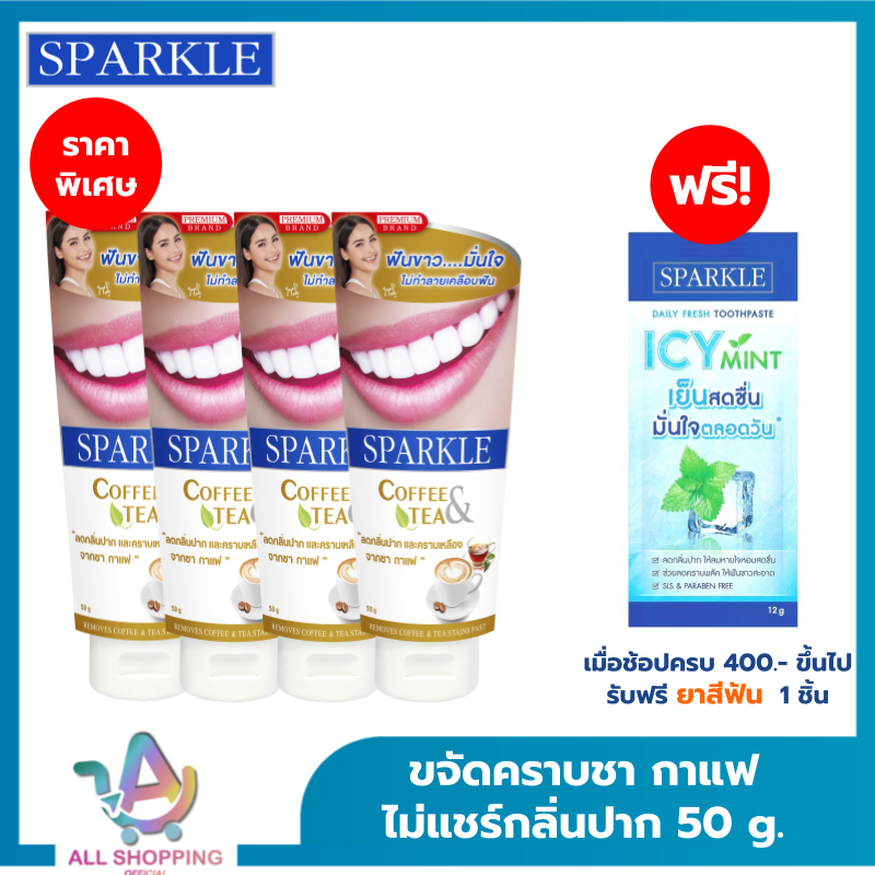 SPARKLE ยาสีฟัน สปาร์คเคิล คอฟฟี่ สูตร COFFEE & TEA TOOTHPASTE 50 กรัม SK0183 ขจัดคราบชา กาแฟ