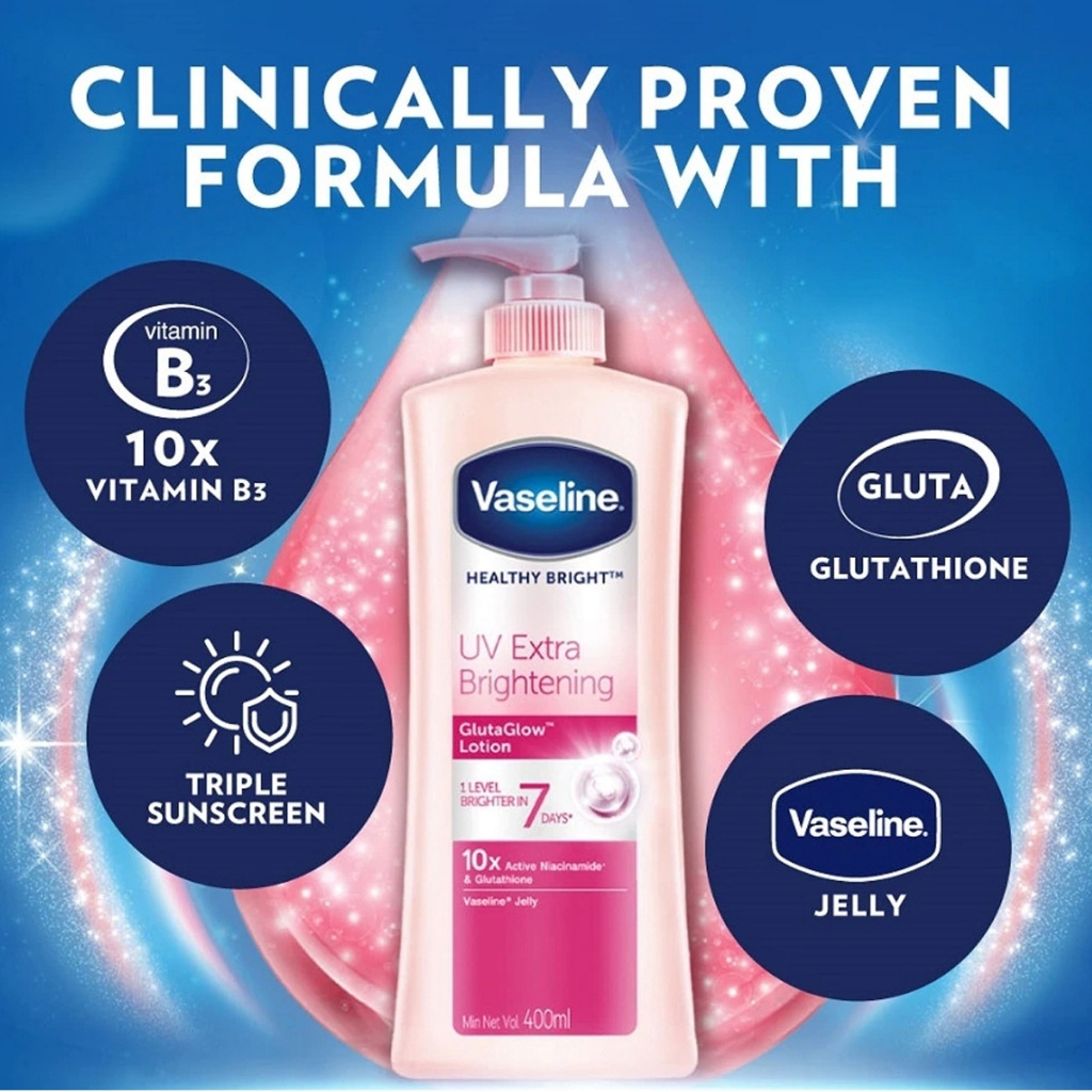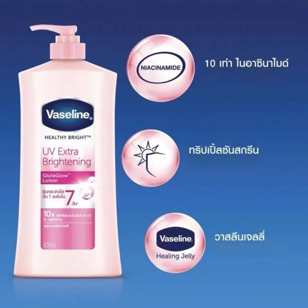 VASELINE วาสลีน ครีมบำรุงผิวกาย เฮลธี้ไบรท์ ยูวีเอ็กซ์ตร้าไบรท์เทนนิ่ง 300 มล Vaseline Brightening Gluta Glow Lotion