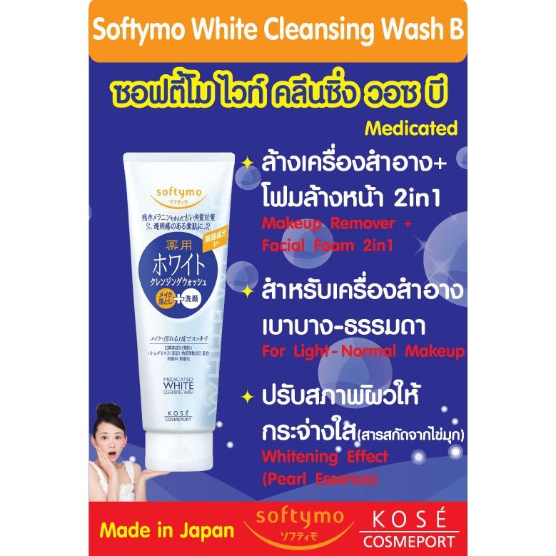 KOSE Softymo โฟมล้างหน้า 2in1 ขจัดเครื่องสำอาง ขนาด 190 กรัม มี 3 สูตร Cleansing Foam ญี่ปุ่น