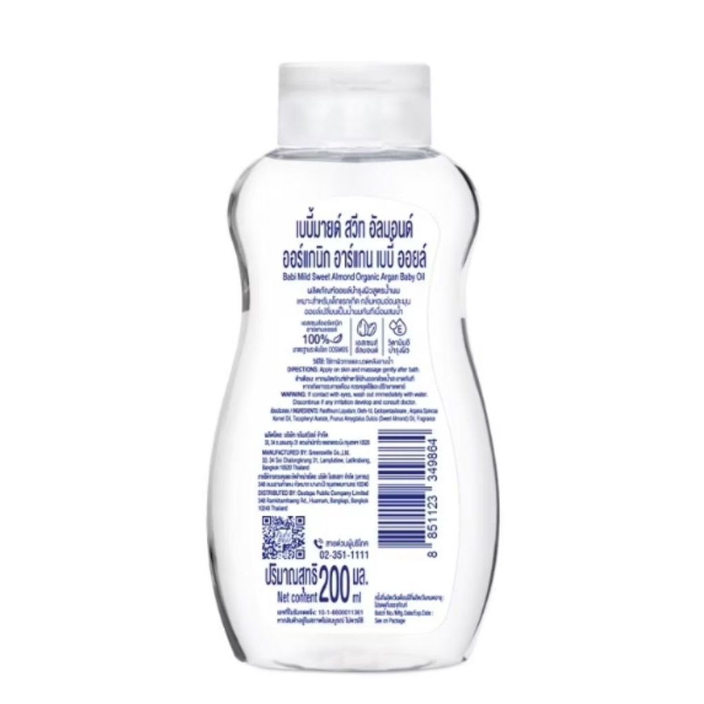 oil ออยล์ เบบี้มายด์ สวีท อ ัลมอนด์ ออร์แกนิก อาร์แกน 200 ml. ออยล์บำรุงผิว