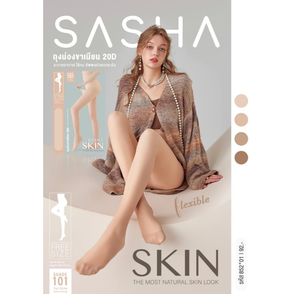 SASHA ซาซ่า ถุงน่องขาเนียน 20D แบบเต็มตัวซัพพอร์ต