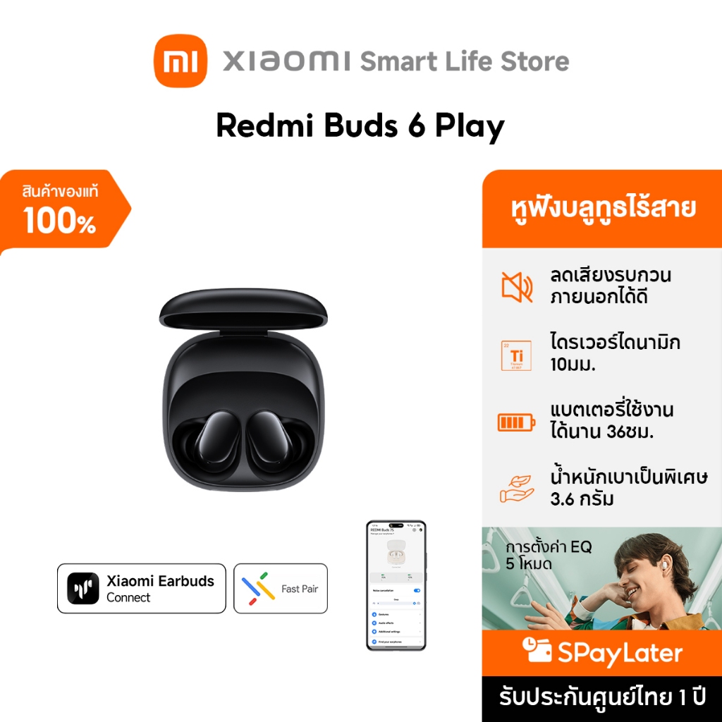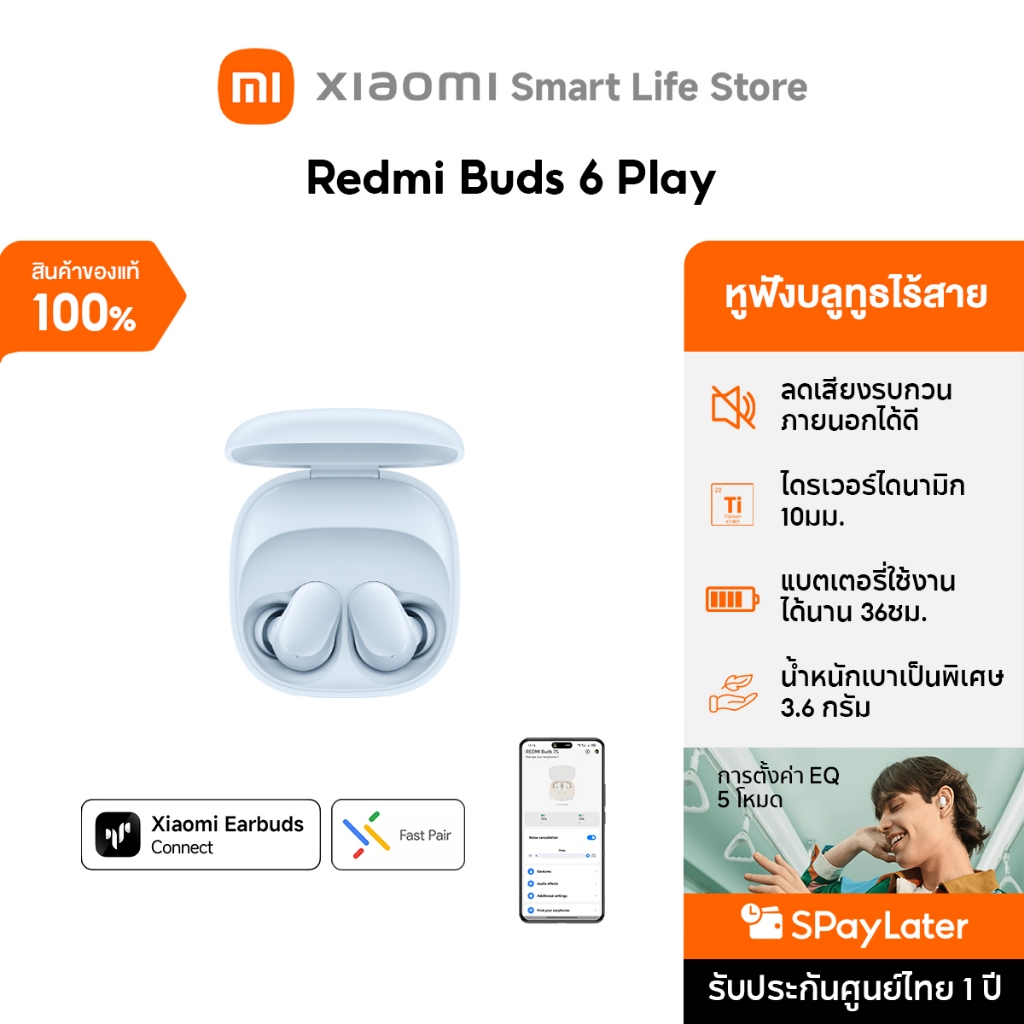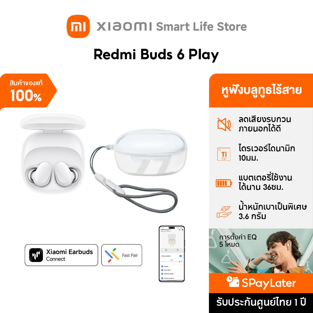 Xiaomi Redmi Buds 6 Play / 8 Active หูฟังบลูทูธ หูฟัง ลดเสียงรบกวน AI การโทรที่ชัดเจน | น้ำหนักเบาเป็นพิเศษ 3.6 กรัม