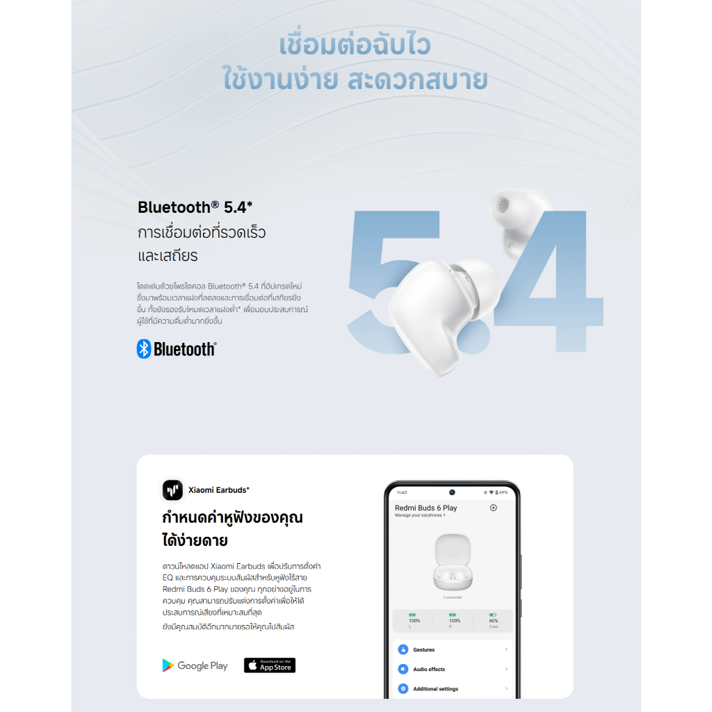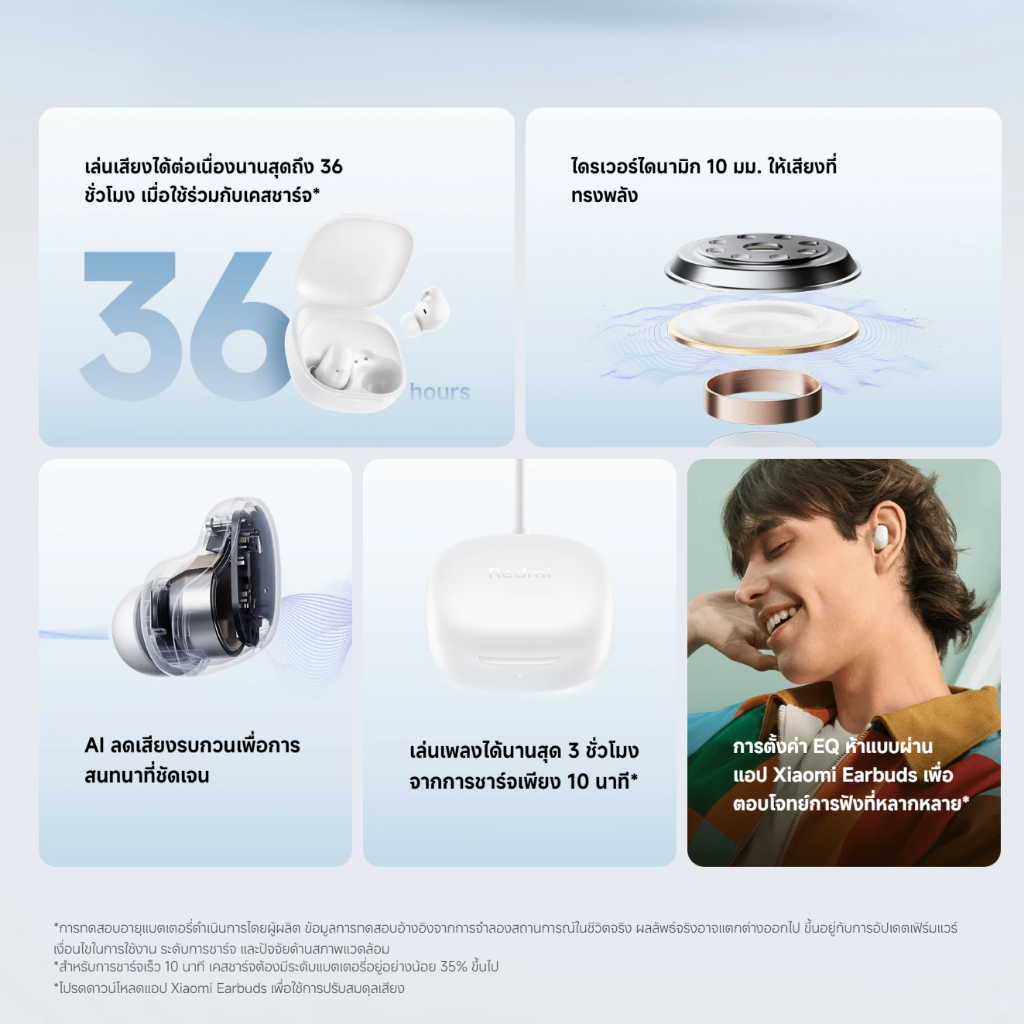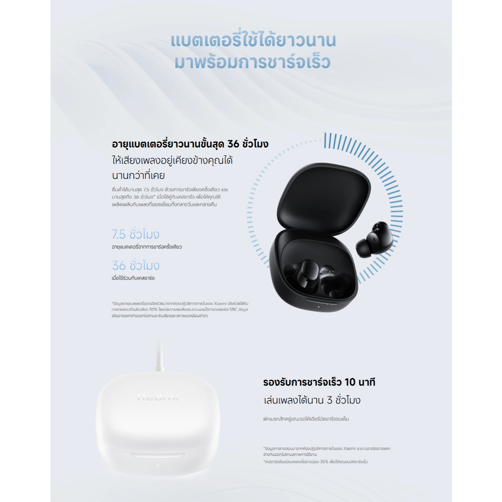 Xiaomi Redmi Buds 6 Play / 8 Active หูฟังบลูทูธ หูฟัง ลดเสียงรบกวน AI การโทรที่ชัดเจน | น้ำหนักเบาเป็นพิเศษ 3.6 กรัม