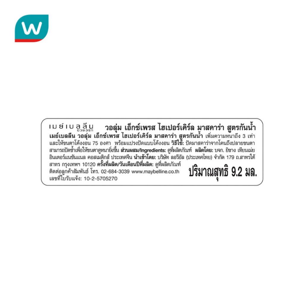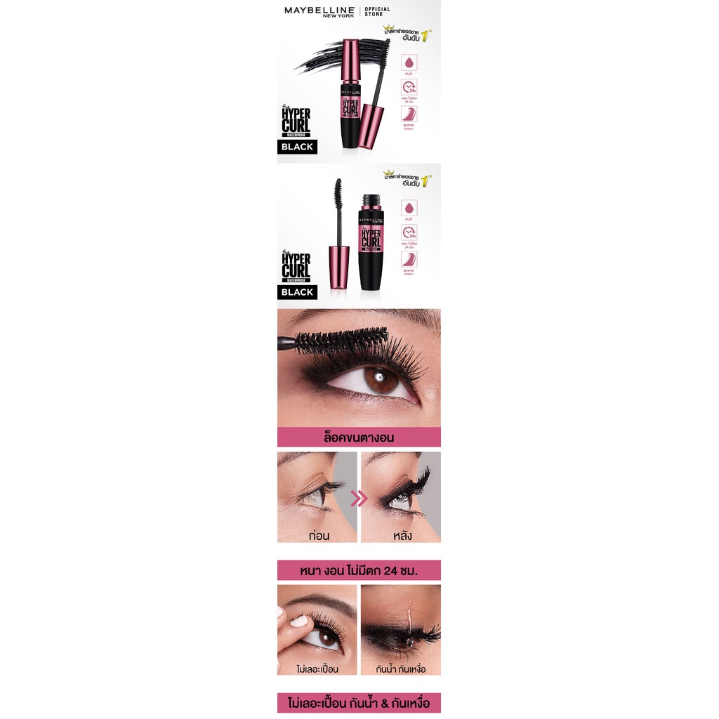 Maybelline เมย์เบลลีน ไฮเปอร์เคิร์ท วอเตอร์พรูฟ มาสคาร่า 9.2 มล. #สีน้ำตาล