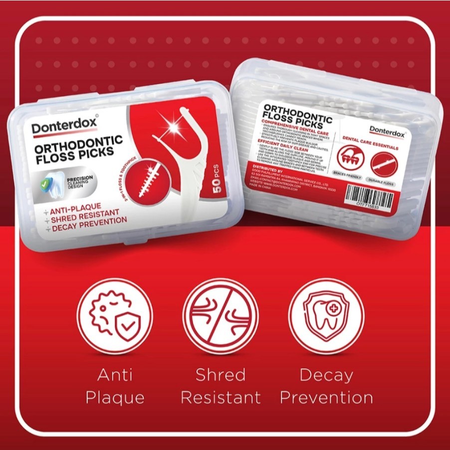 (1ชิ้น/3ชิน) Donterdox ไหมขัดฟันแบบด้ามพร้อมก้านขัดซอกฟัน (50ชิ้น/กล่อง) Floss Picks แปรงซอกฟัน ไหมขัดฟันคนจัดฟัน