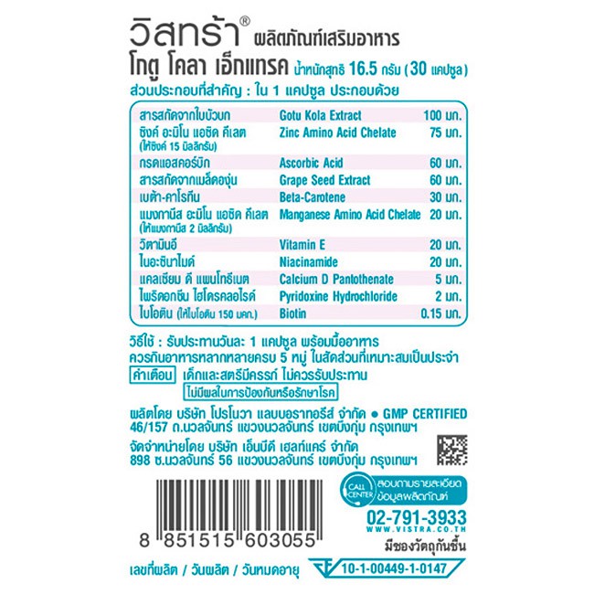 Vistra Gotu Kola Extract Plus Zinc วิสทร้า โกตู โคลา เอ็กแทรค