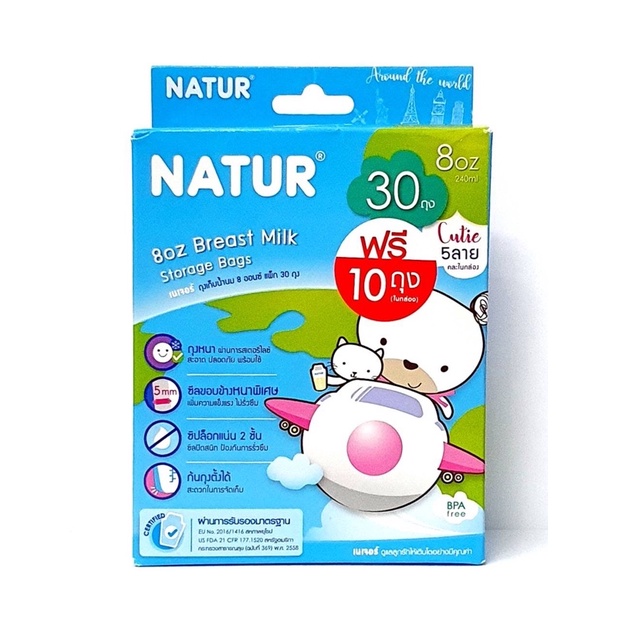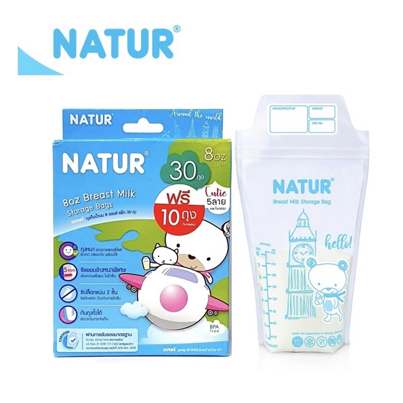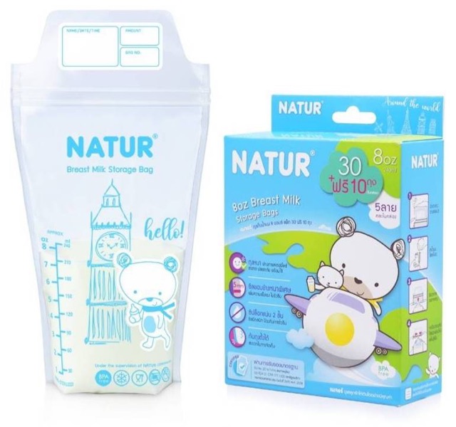 NATUR เนเจอร์ถุง เก็บน้ำนม ขนาด 8oz บรรจุ 30 ถุง ฟรี 10 ถุง (1กล่อง)