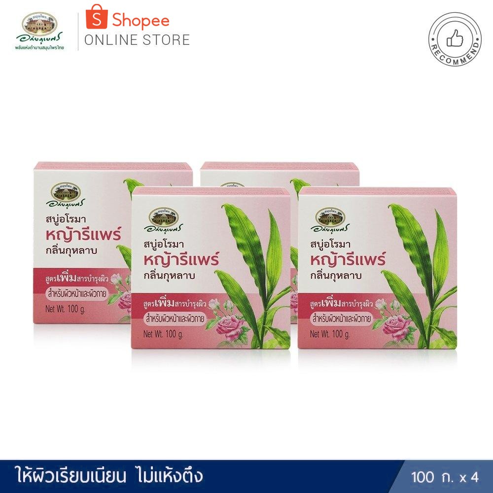แพค 4 ก้อน ลด 20%🎉 สบู่อโรมา หญ้ารีแพร์ กลิ่นกุหลาบ สูตรเพิ่มสารบำรุงผิว สำหรับผิวหน้าและผิวกาย.