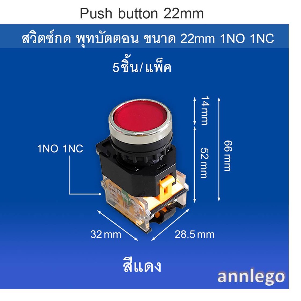 Push button สวิตซ์กด พุทบัตตอน ขนาด 22 มม.1NO 1NC (5ชิ้น/แพ็ค)
