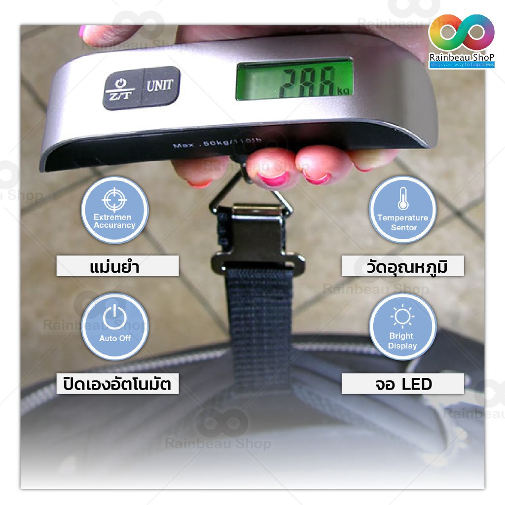 RAINBEAU ที่ช ั่งน้ำหนักกระเป๋าเดินทาง ตาชั่งดิจิตอล ไฟ Backlight Digital Luggage Scale 110lb/50kg แสดงน้ำหนักชัดเจน
