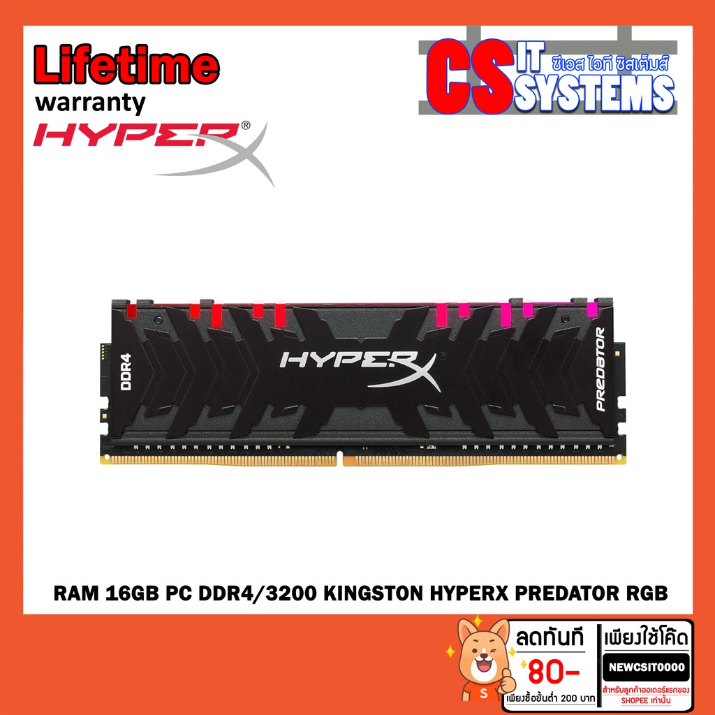 RAM PC 16GB (16GBx1) DDR4/3200 KINGSTON HYPER X PREDATOR RGB