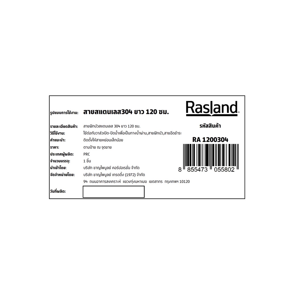 RASLAND สายฝักบัว สแตนเลส 304 ขนาด 120 ซม. | RA 1200304