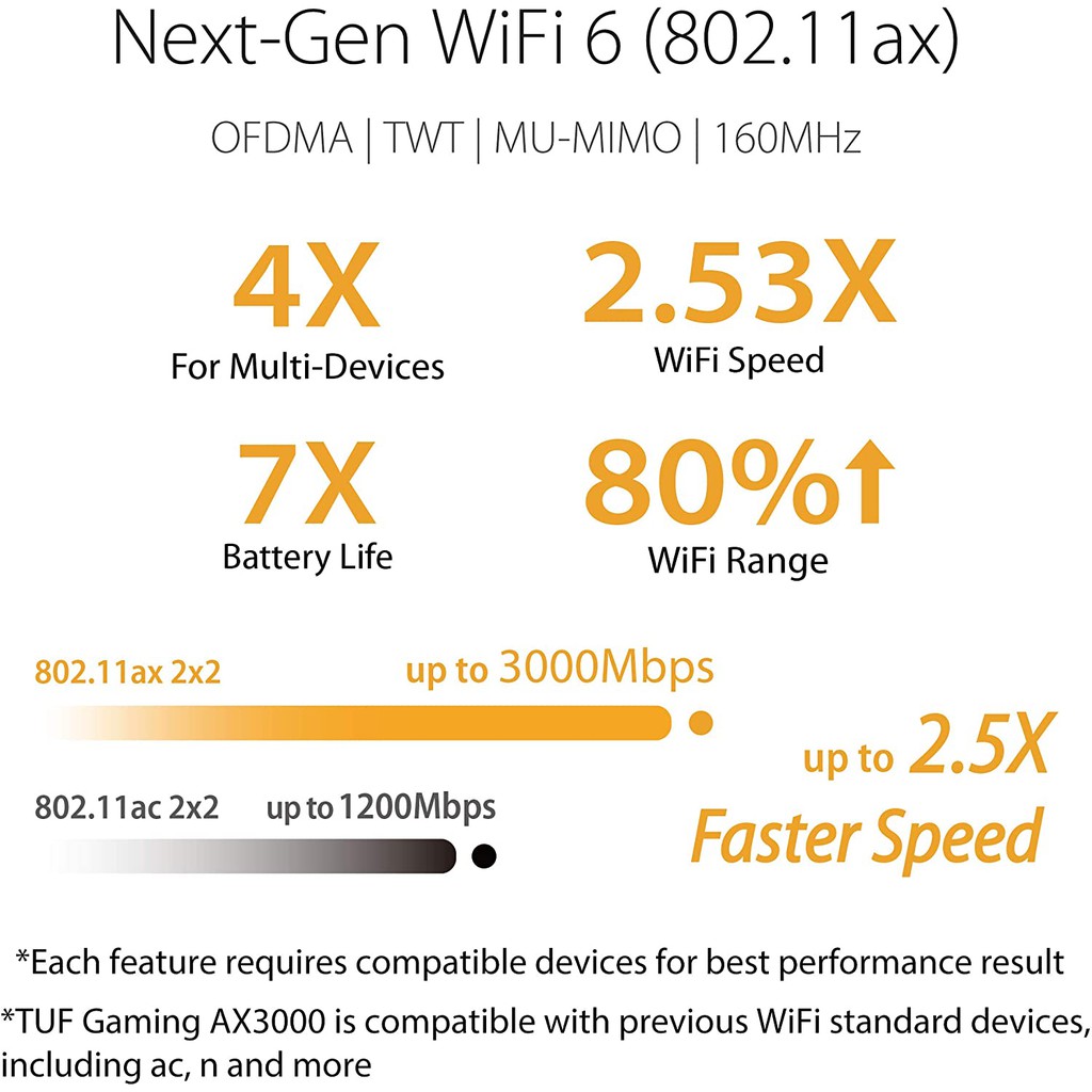 ROUTER (เราเตอร์) ASUS (TUF-AX3000) AX3000 Dual Band WiFi 6 (802.11ax) Gaming Router