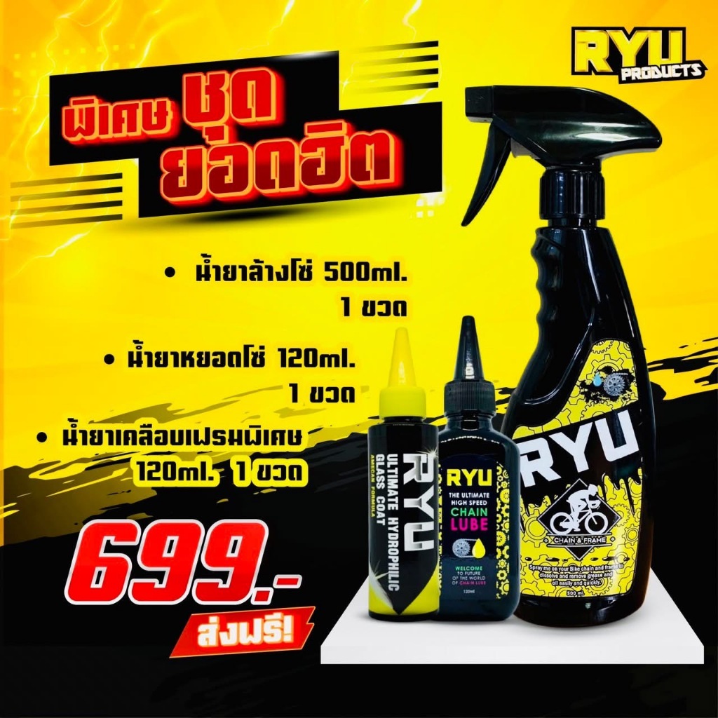 RYU น้ำยาล้างโซ่จักรยาน เฟรมรถจักรยาน ล้างคราบน้ำมันฝังแน่น น้ำยาล้างโซ่มอเตอร์ไซค์ ขนาด (500 Ml 1ขวด)