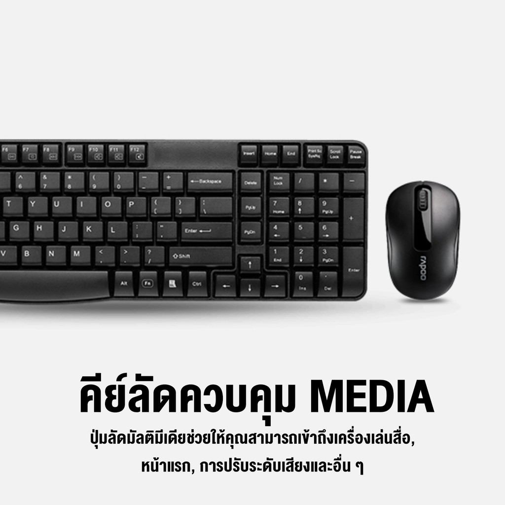 Rapoo X1800S Waterproof Multimedia Wireless Keyboard Mouse Combos Optical 2.4G (KB-X1800S-BK)