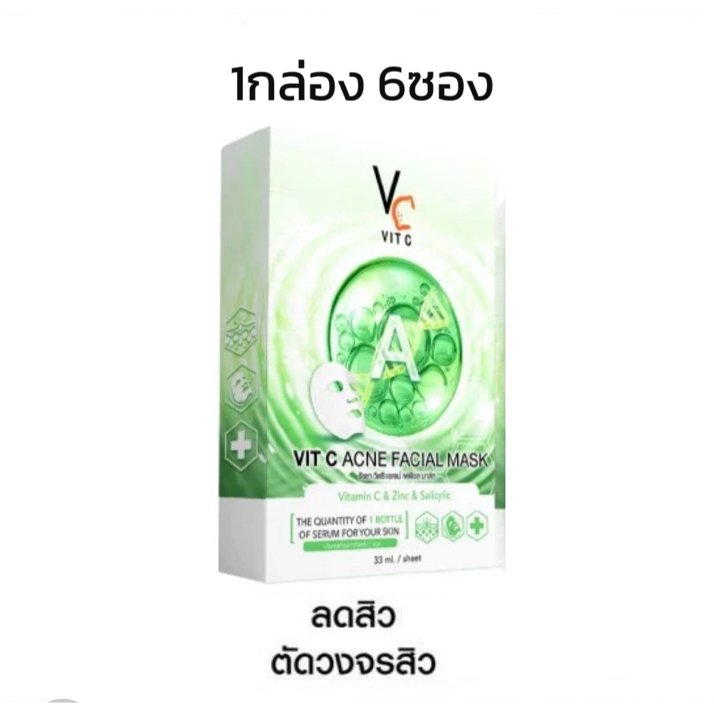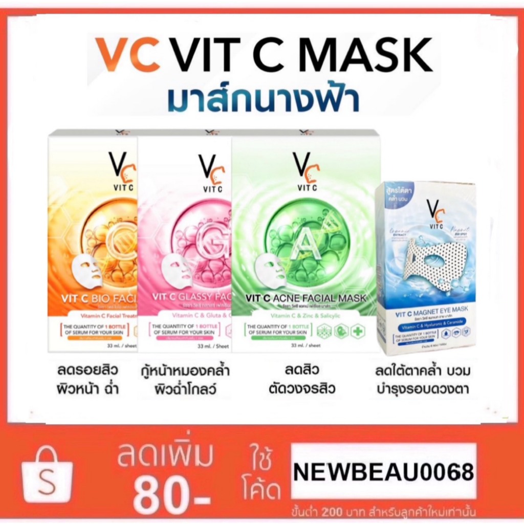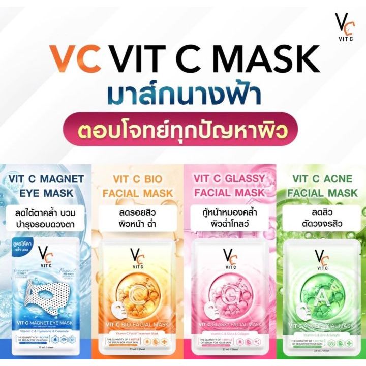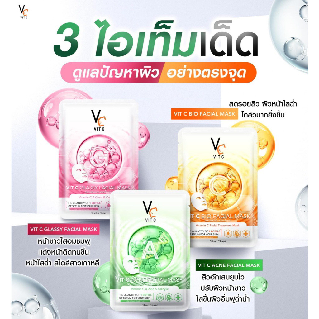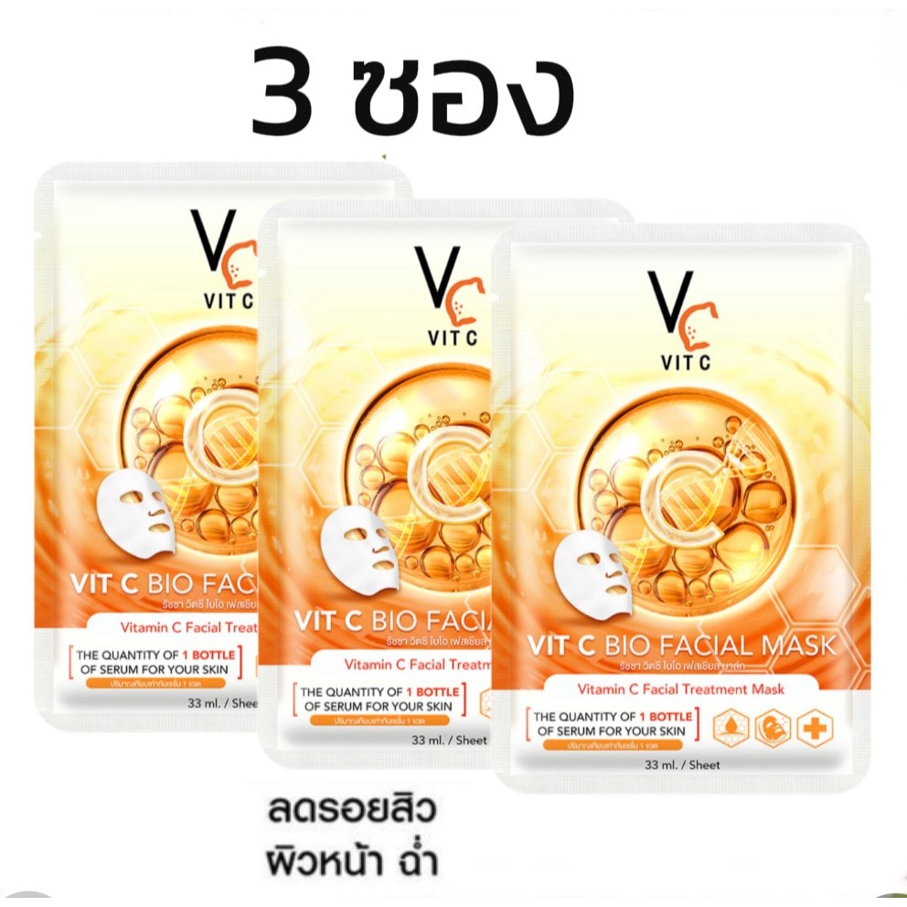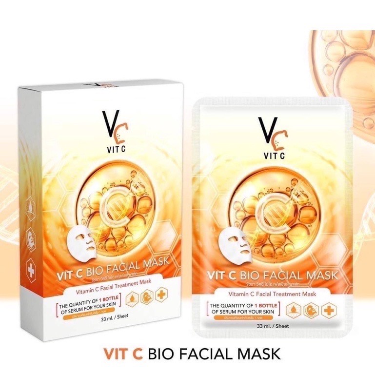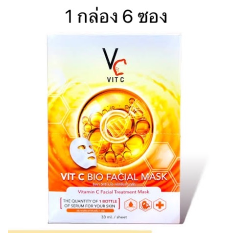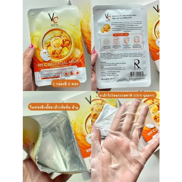 แผ่นมาร์คหน้า VC น้องฉัตร Ratcha Vit c bio facial mask ขาวกระจ่างใส 1 กล่องมี 6 แผ่น