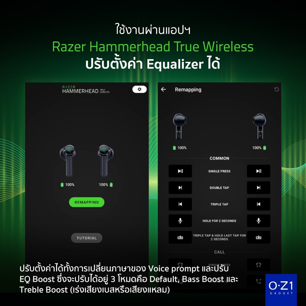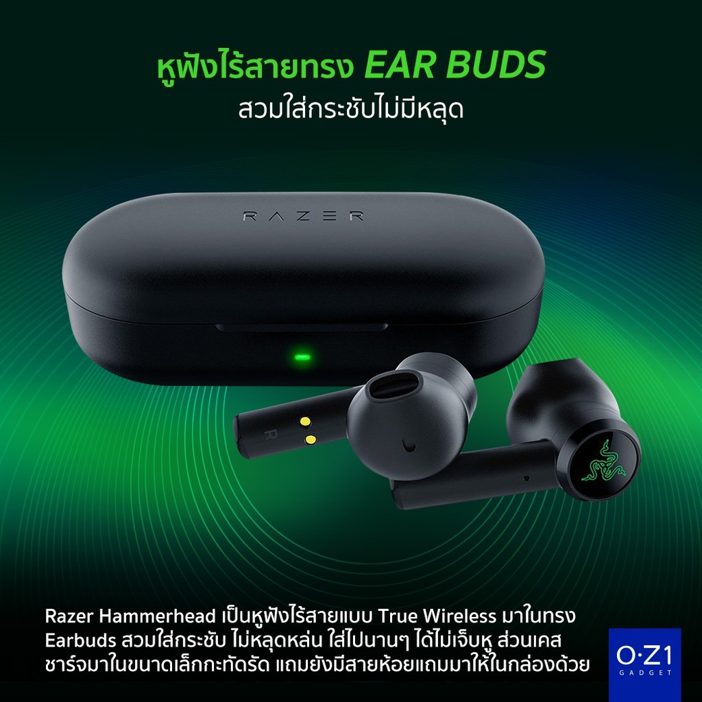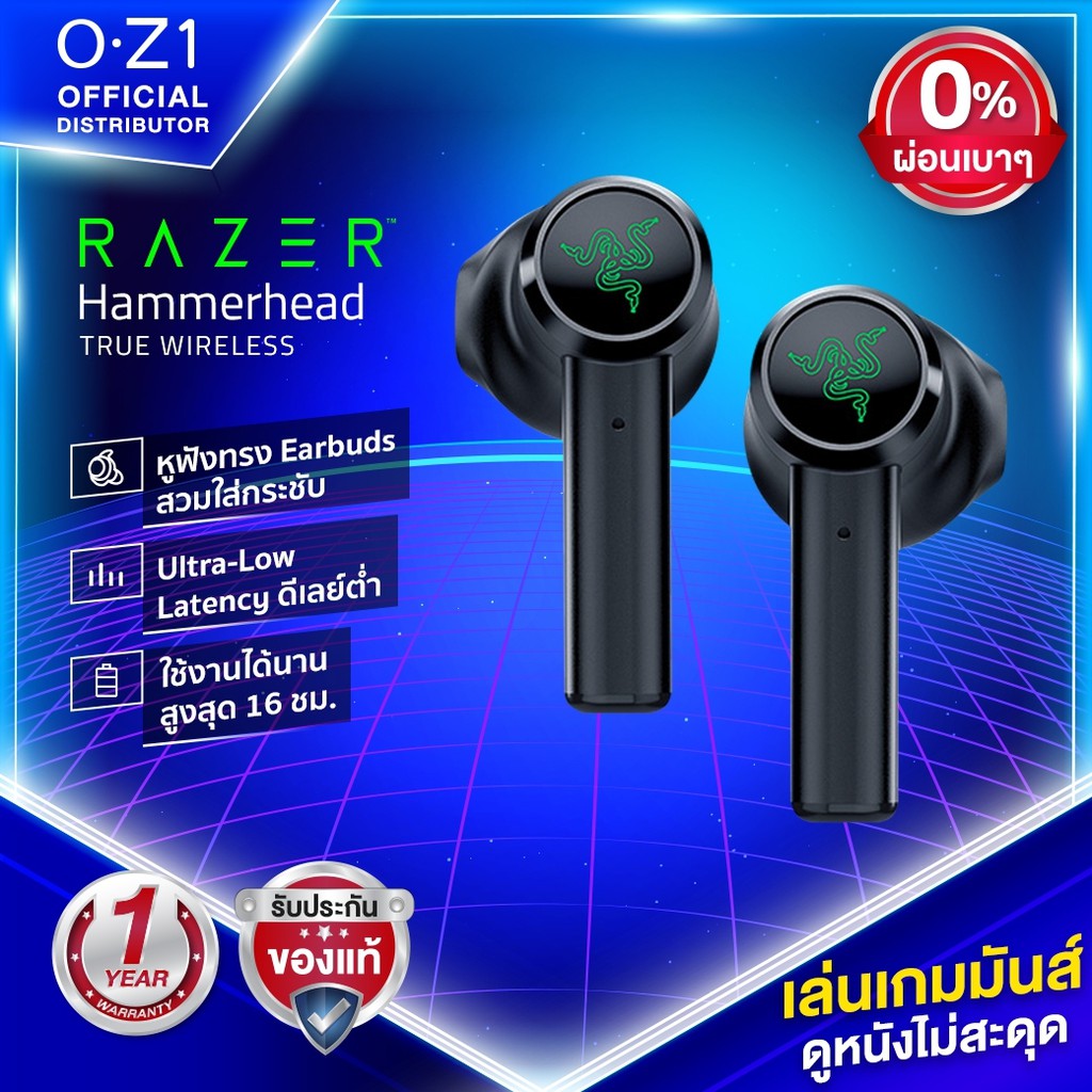 Razer Hammerhead True Wireless [ประกันศูนย์ Synnex] หูฟังไร้สายเกมมิ่ง ดีเลย์ต่ำมาก เสียงดี กันน้ำ IPX4