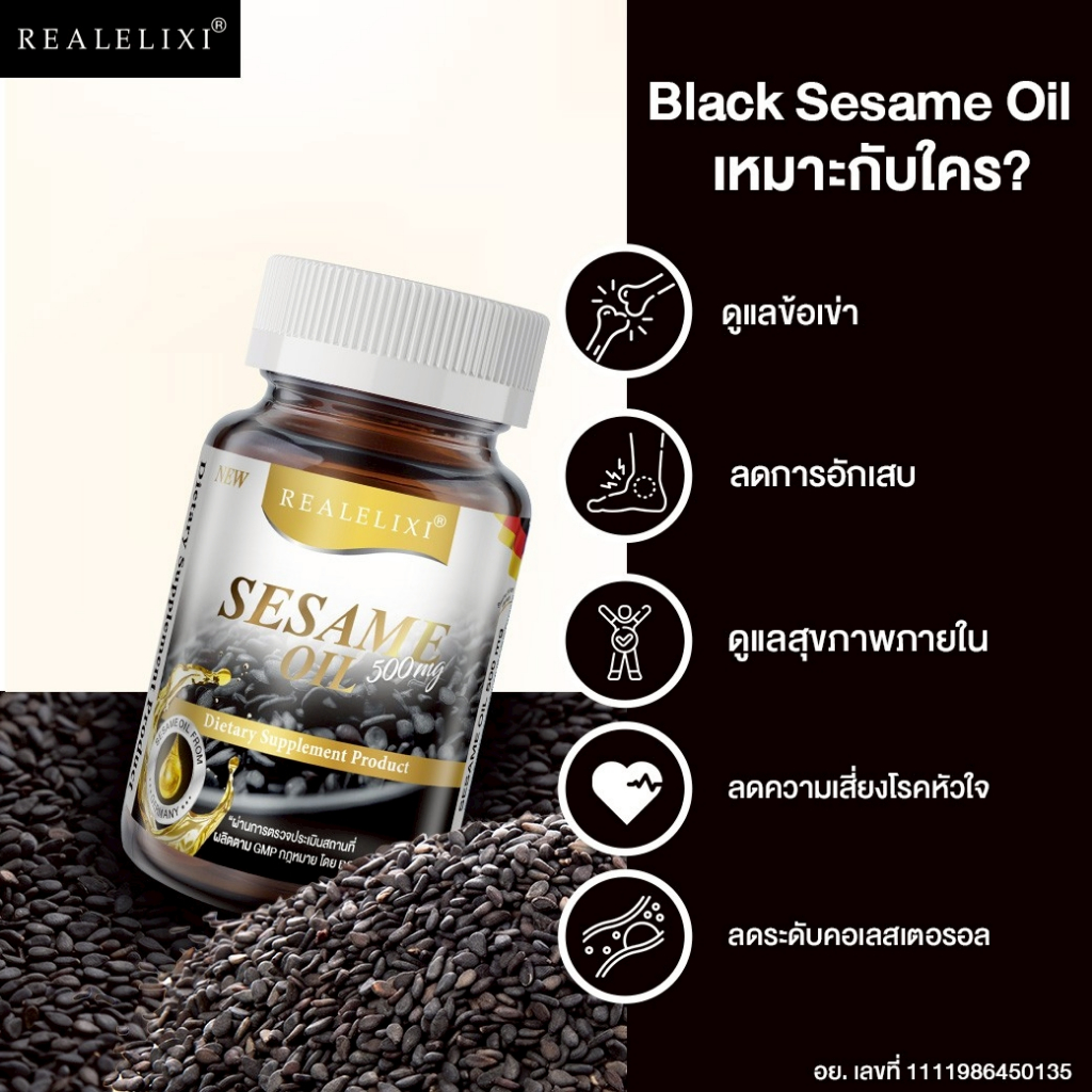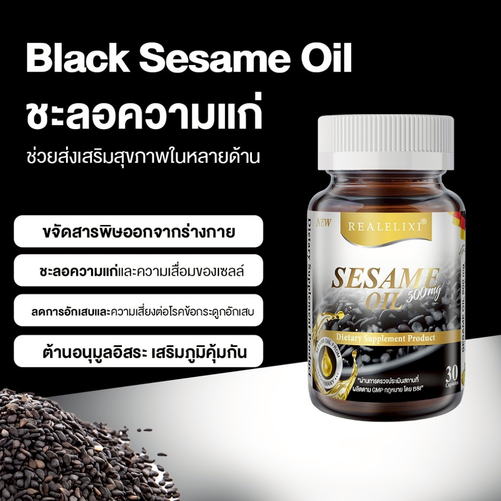 Real Elixir Black Sesame Oil 500 mg. น้ำมันงา (30เม็ด)