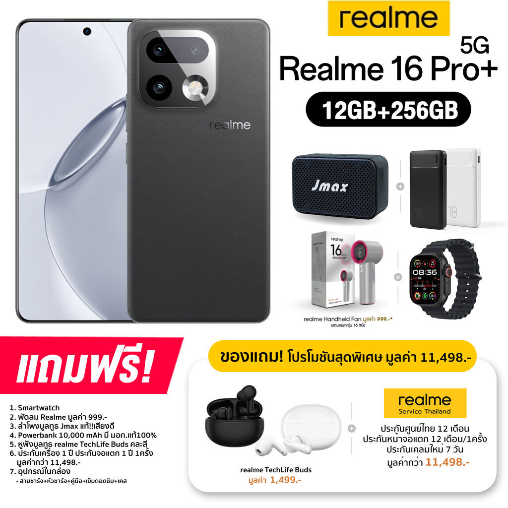 Realme 16 Pro+ 5G (12+256GB) จอ AMOLED ขนาด 6.8 นิ้ว กล้องหลัก 200MP แบต 7,000mAh ชาร์จไว 80W (เครื่องแท้ ศูนย์ไทย)