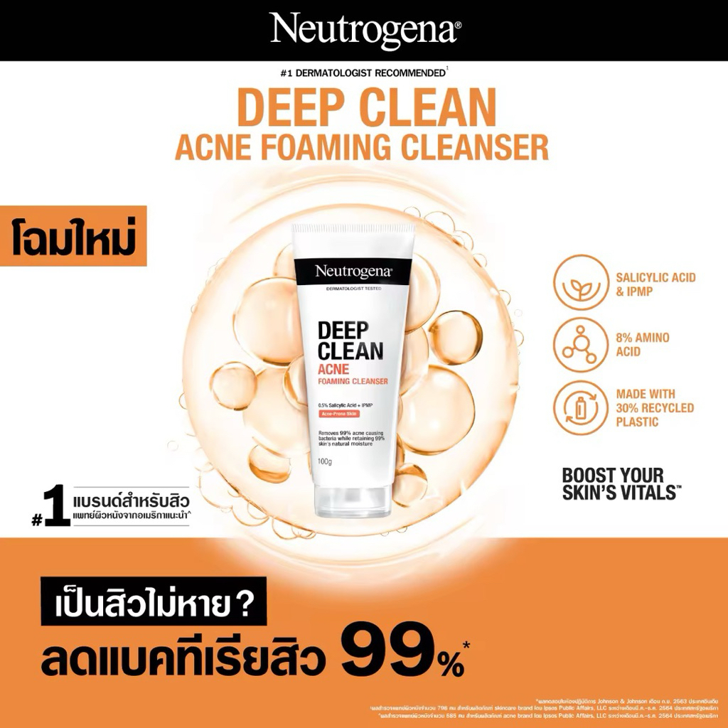 นูโทรจีน่า ดีพ คลีน เเอคเน่ เเฟเชียล คลีนเชอร์ โฟมล้างหน้า 150 กรัม
