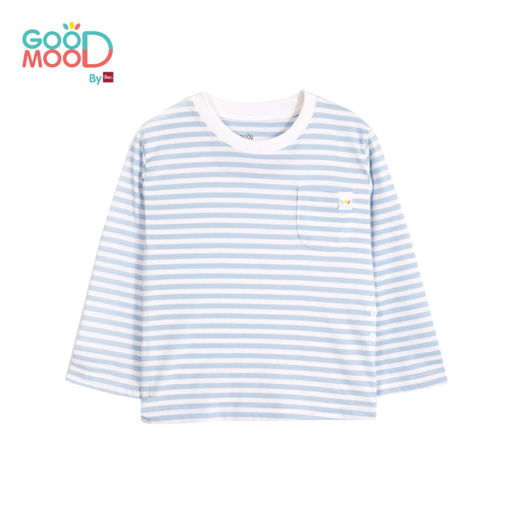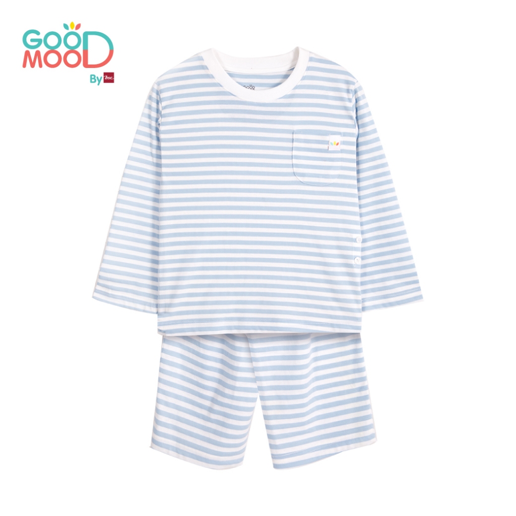 Good Mood by bsc ชุดนอนแขนยาว+กางเกงขายาวลายริ้ว สีฟ้า สำหรับเด็กอายุ 4-5 ปี ผ้า Single Cotton