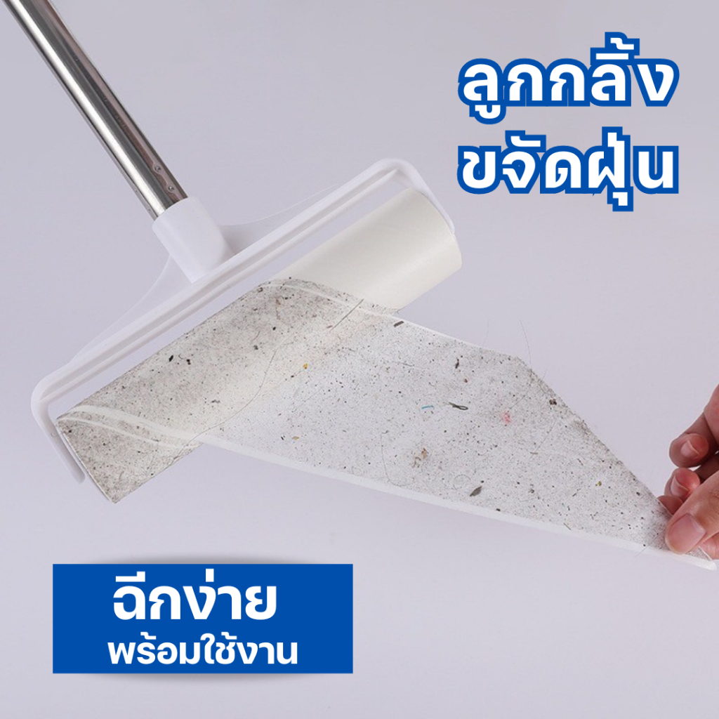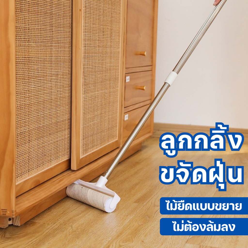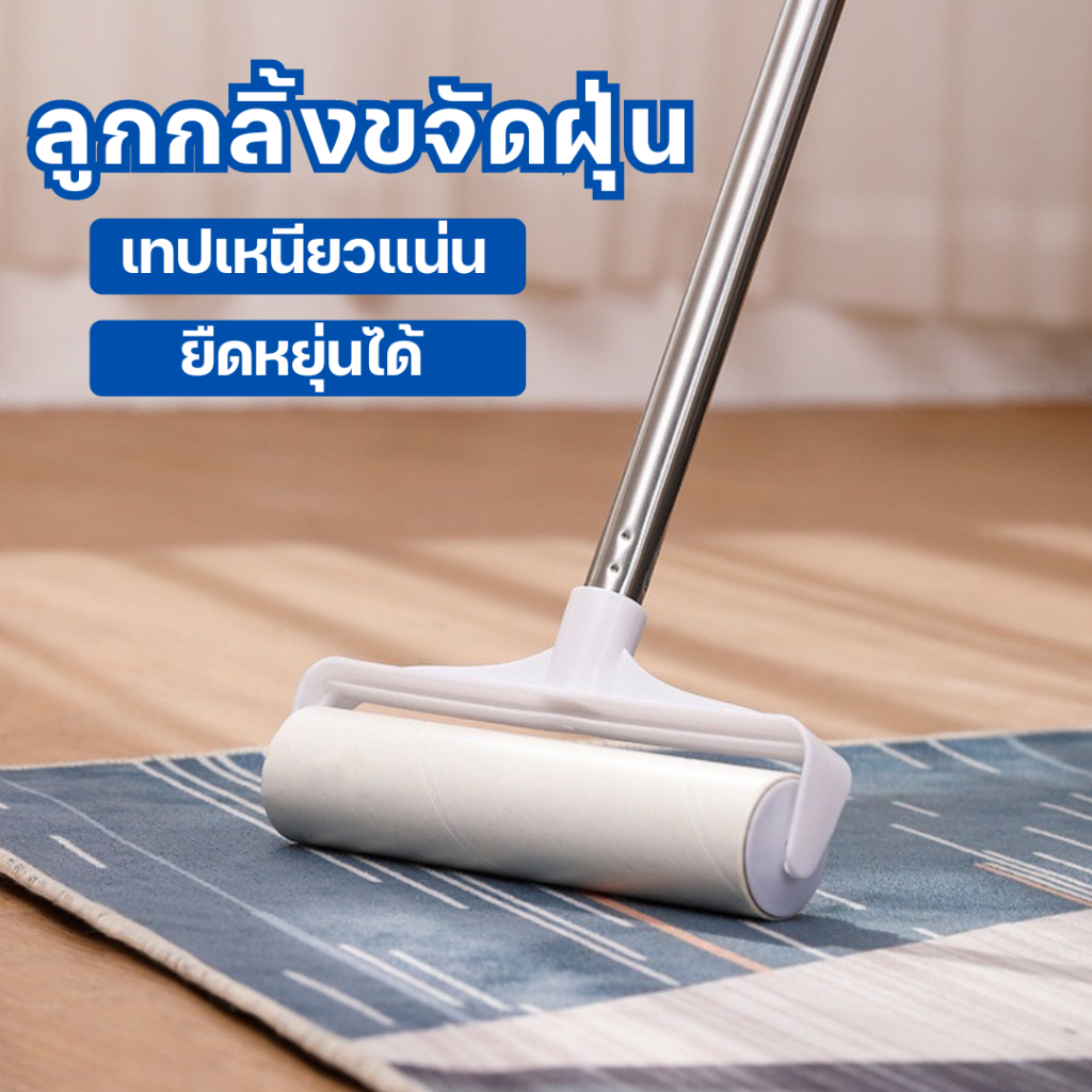ที่กลิ้งเก็บฝุ่น(ด้ามขาว) ขนาด24cm เก็บฝุ่น ขนแมว ด้ามจับปรับความยาวได้ สะดวกต่อการทำความสะอาดพื้น