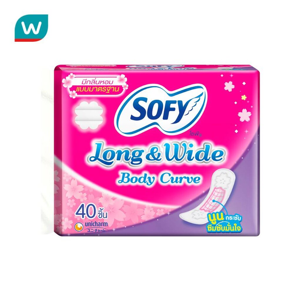 Sofy โซฟี แผ่นอนามัย ลอง แอนด์ ไวด์ บอดี้ เคิร์ฟ แบบมาตรฐาน มีกลิ่นหอม 40ชิ้น