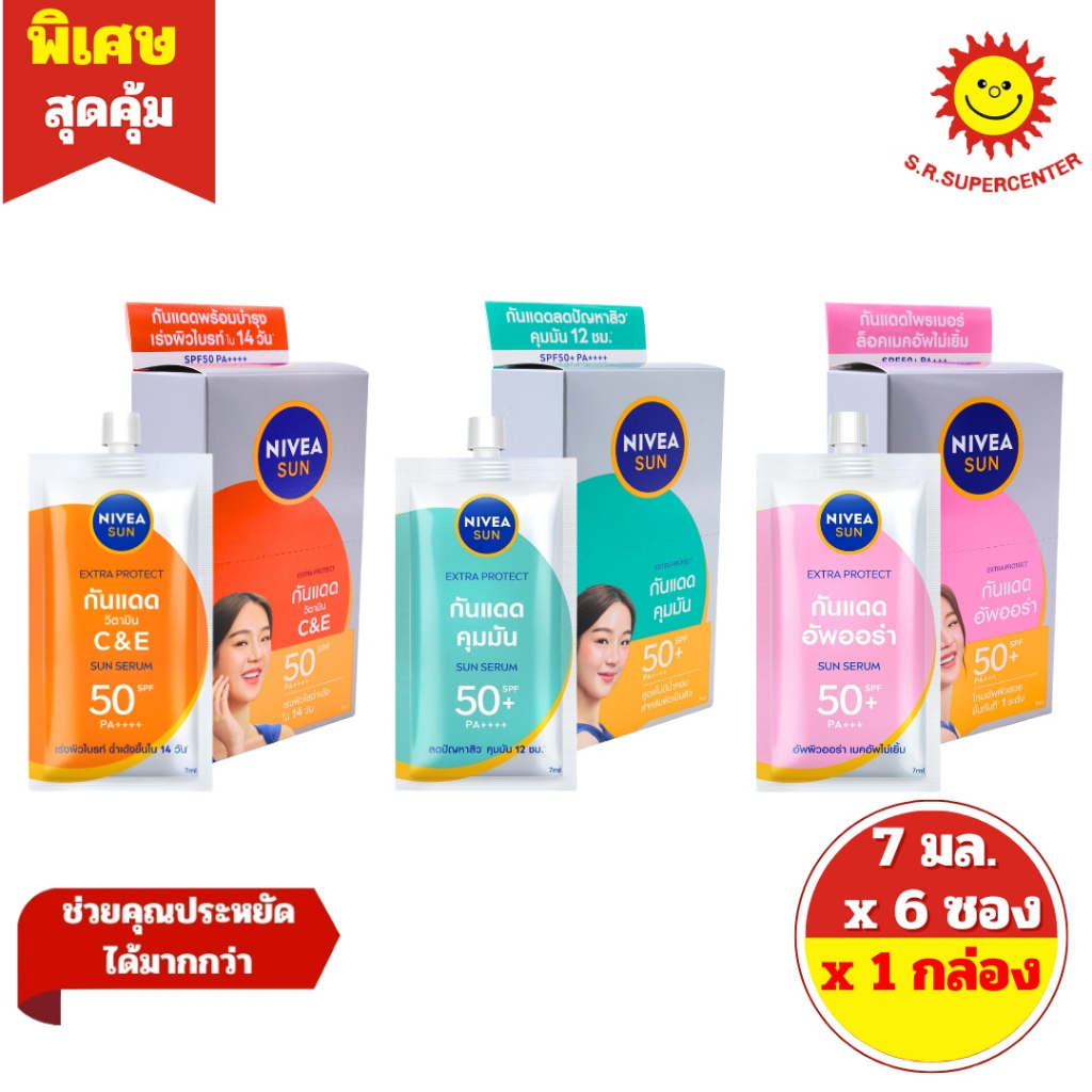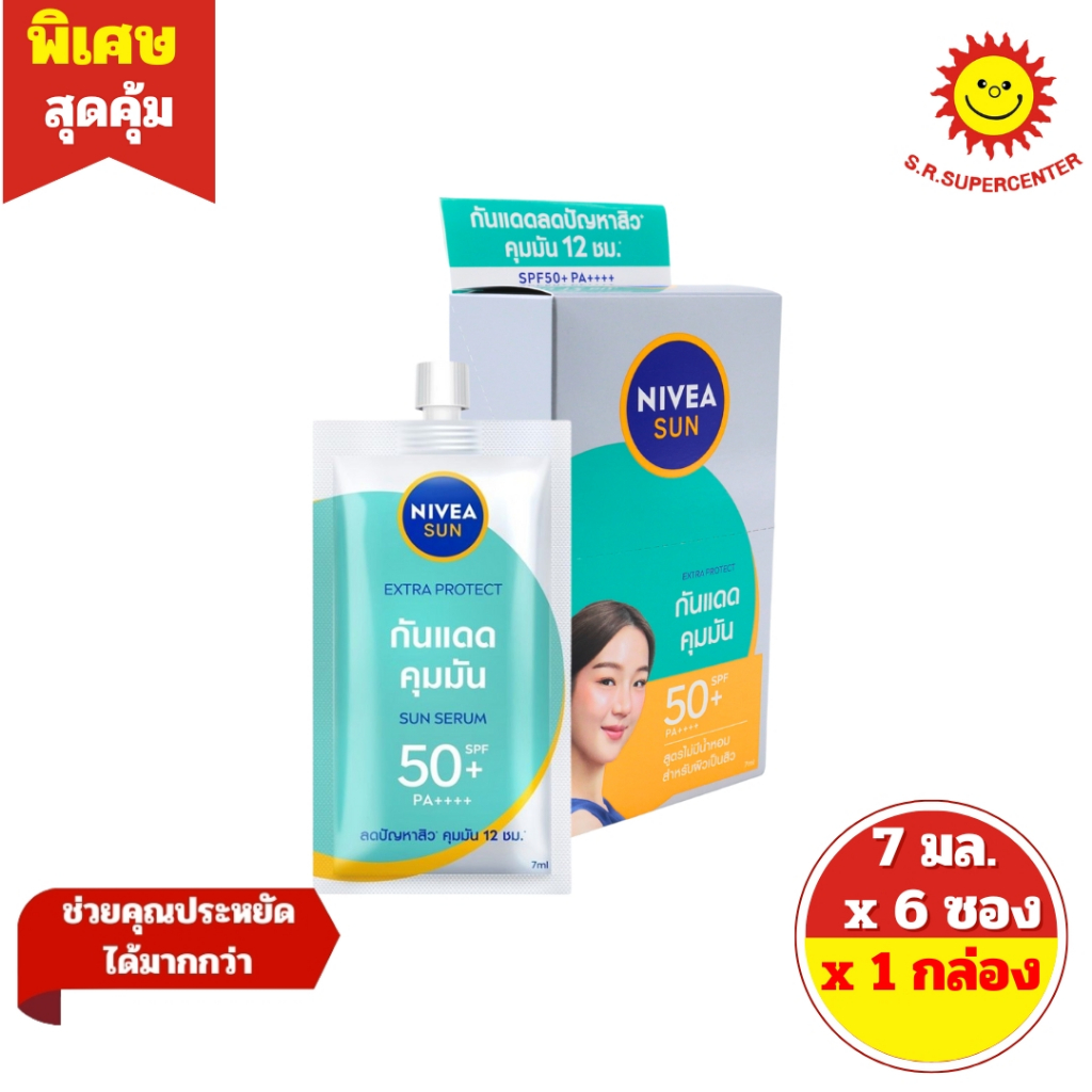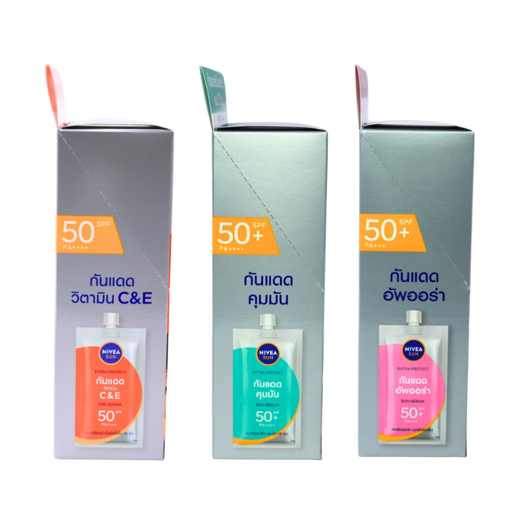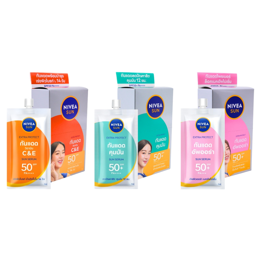 [ 1 กล่อง ] Nivea นีเวีย ซัน เอ็กซ์ตร้า โพรเท็ค สูตรต่างๆ ปริมาณ 7 มล. x 6 ซอง