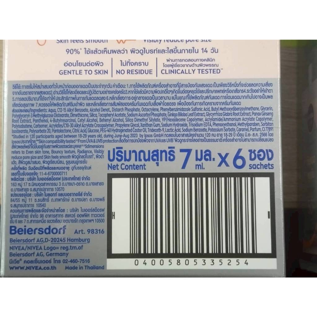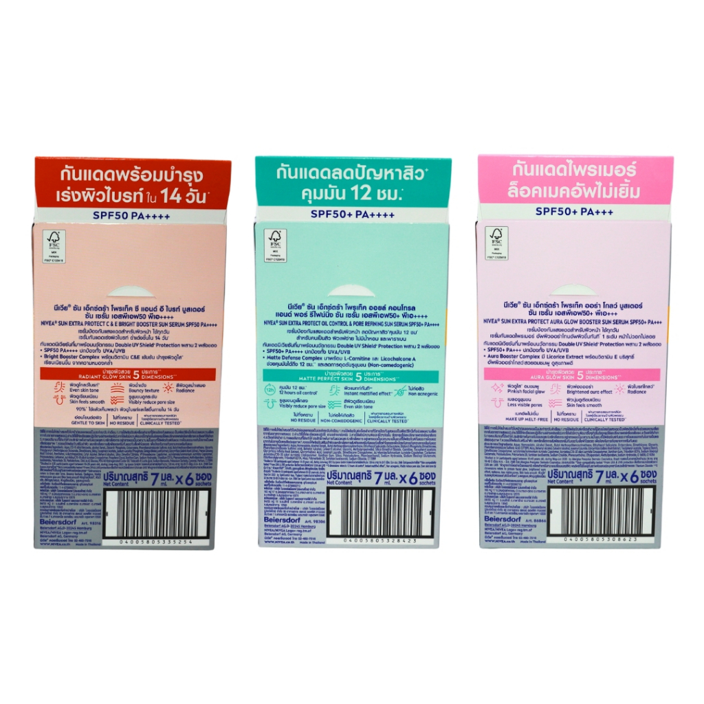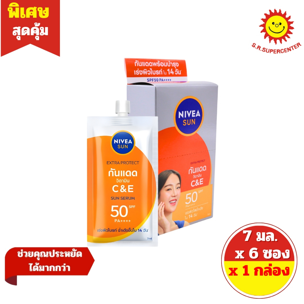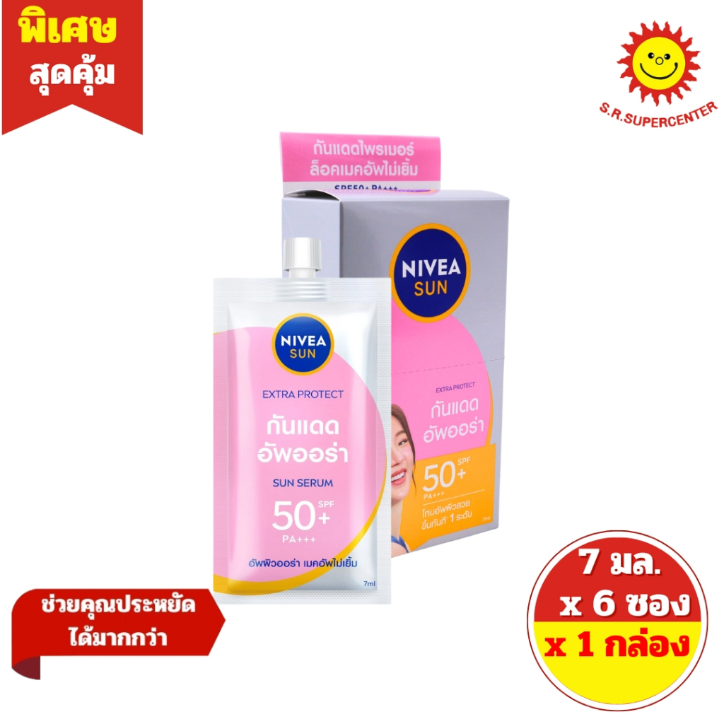 [ 1 กล่อง ] Nivea นีเวีย ซัน เอ็กซ์ตร้า โพรเท็ค สูตรต่างๆ ปริมาณ 7 มล. x 6 ซอง