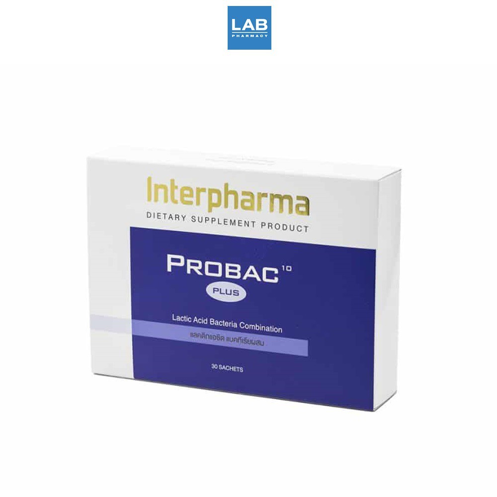 Interpharma Probac 10 Plus 30 sachets/box - โปรแบค เท็น พลัส ผลิตภัณฑ์เสริมจุรินทรีย์ 10 สายพันธุ์ 1 กล่อง บรรจุ 30 ซอง