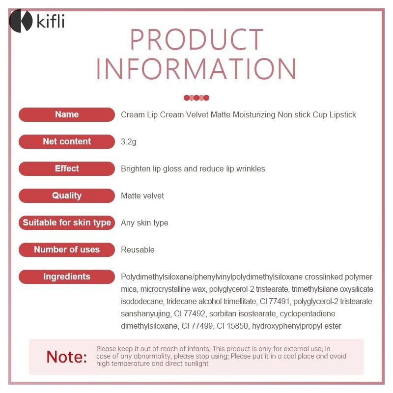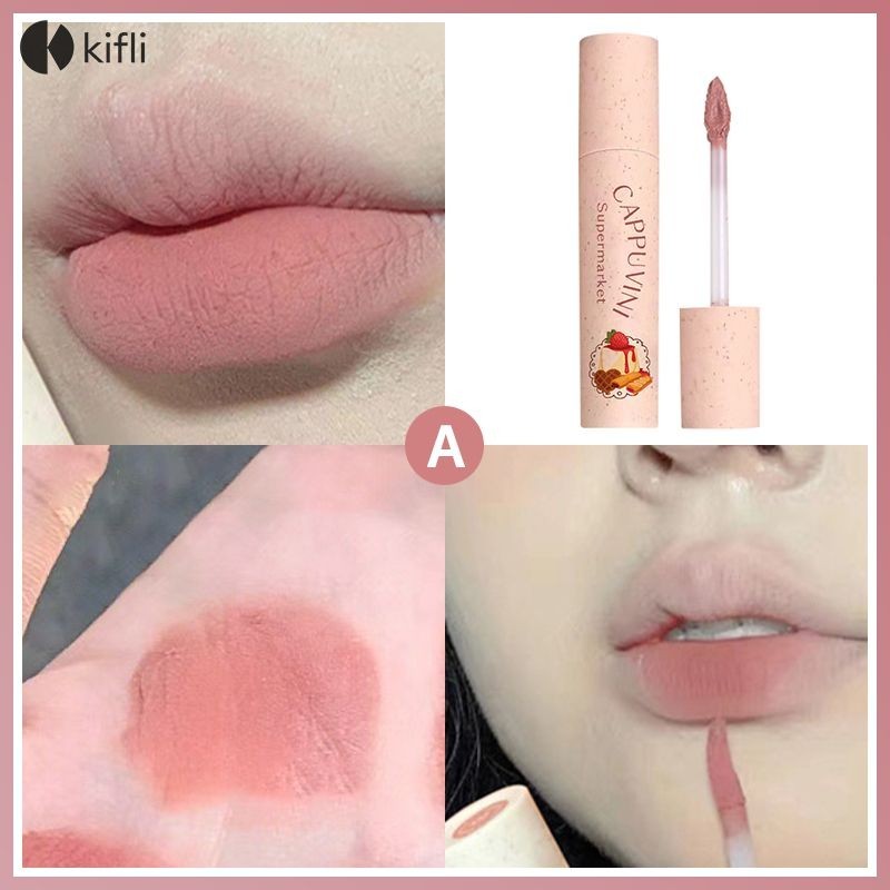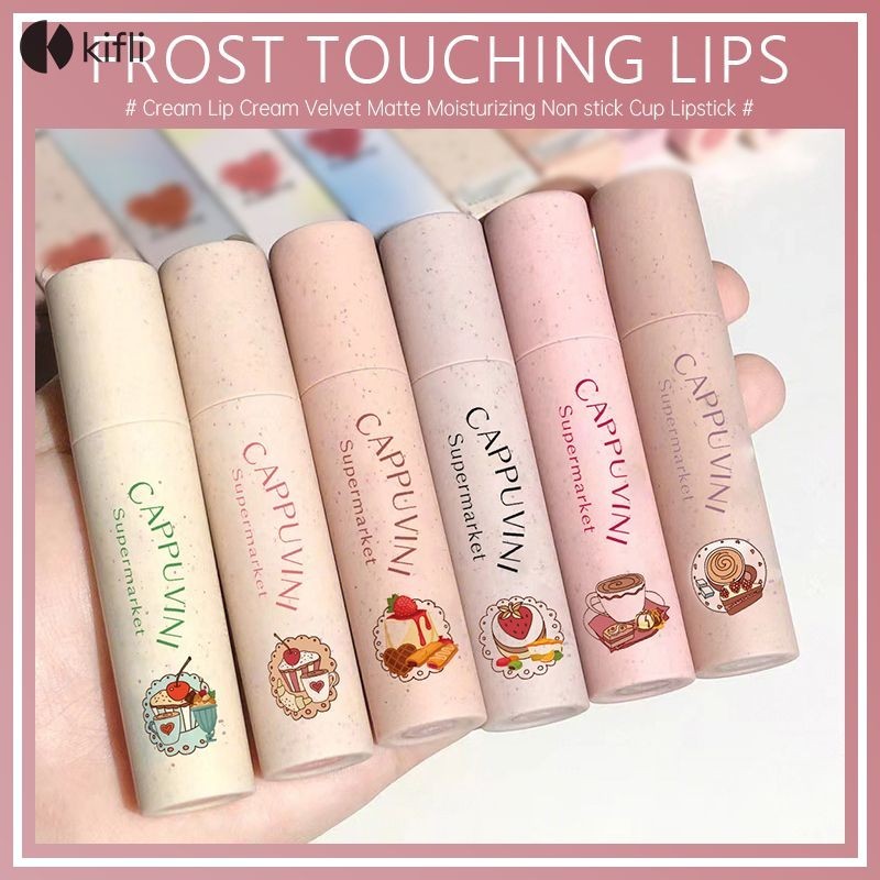 【kifli1 】Velvet Matte Lip Cream Student Peach Lip Glaze Moisturizing Non Stick Cup ลิปสติก-KI