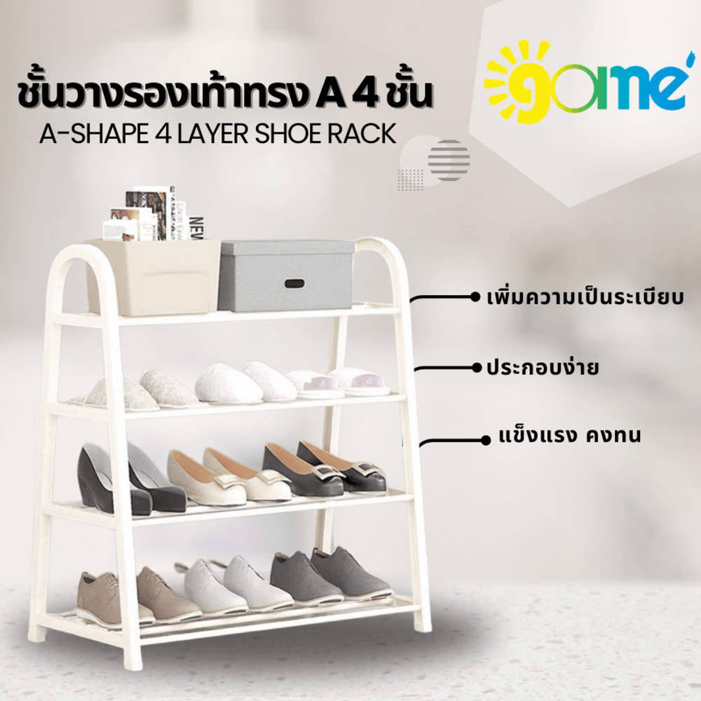 GlobalHouse GOME ชั้นวางรองเท้าทรง A 4 ชั้น รุ่น BR002WH W29×L61×H65CM. สีขาว สินค้าของแท้คุณภาพดี