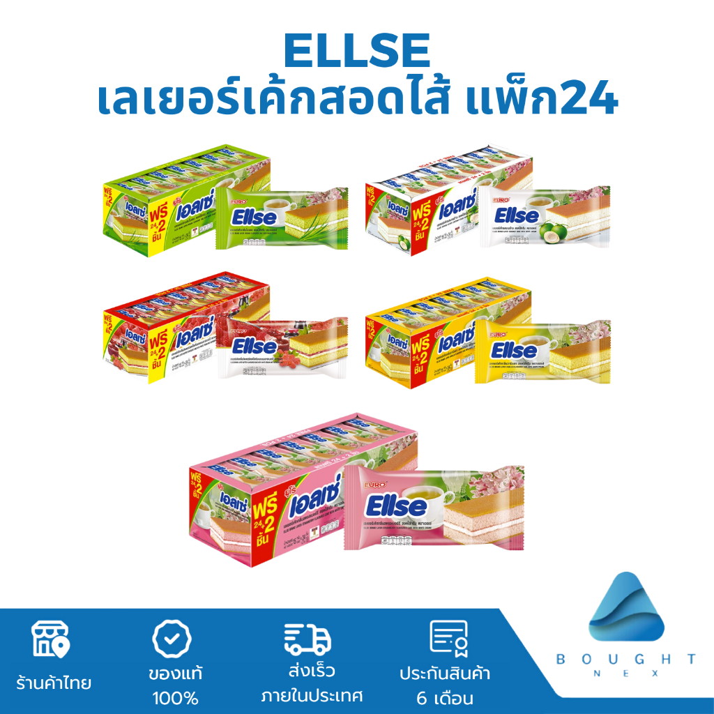Ellse เอลเซ่ เลเยอร์เค้ก ขนาด 360 g ขนมเค้ก เลเยอร์เค้กสอดไส้ 15 กรัม แพ็ก 24