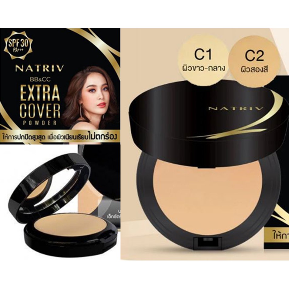 Natriv นาทริฟ บีบี แอนด์ ซีซี เอ็กซ์ตร้า คัฟเวอร์ พาวเดอร์ 6 กรัม แป้งแต่งหน้าผสมรองพื้น สูตร Extra Cove ปกปิดจุดด่างดำ