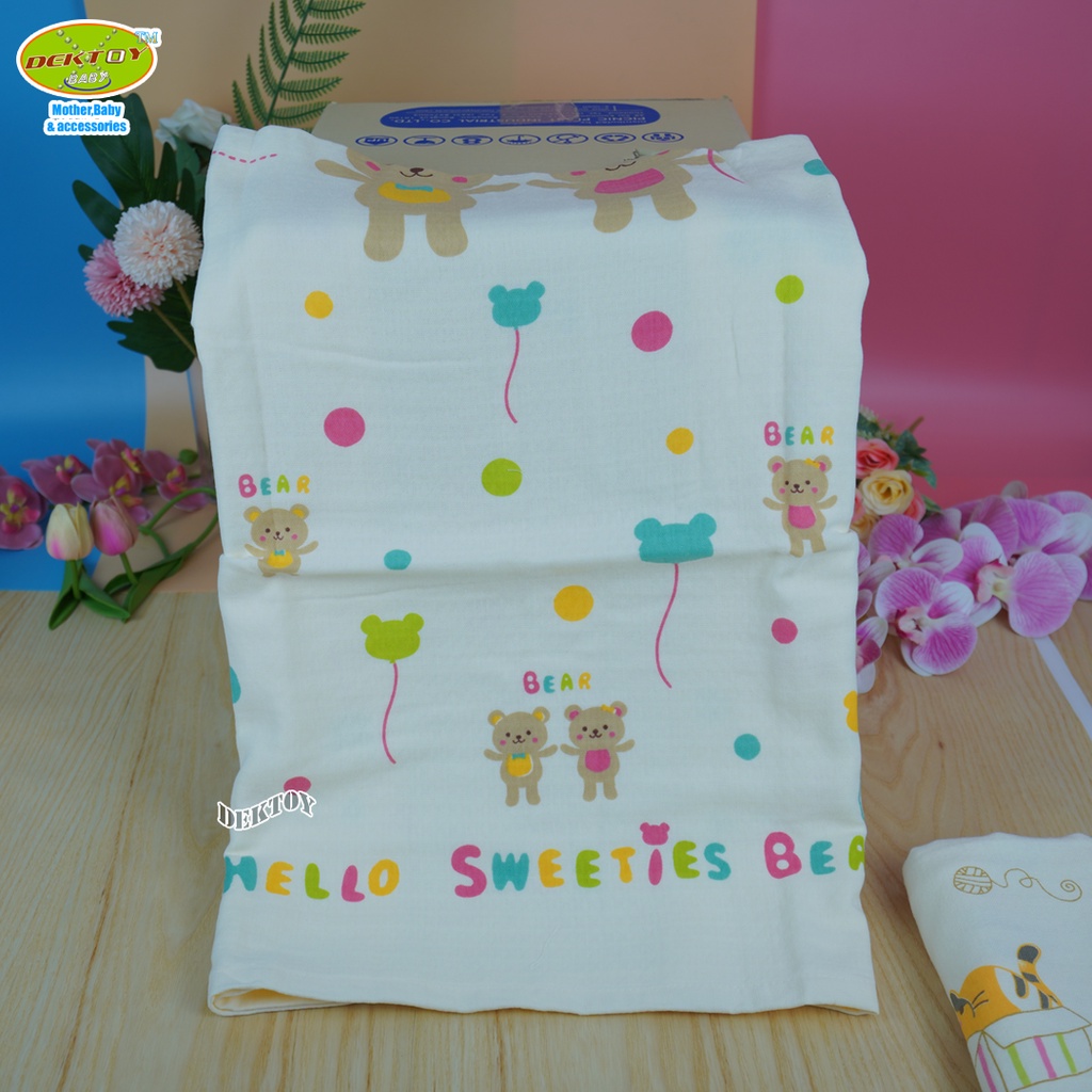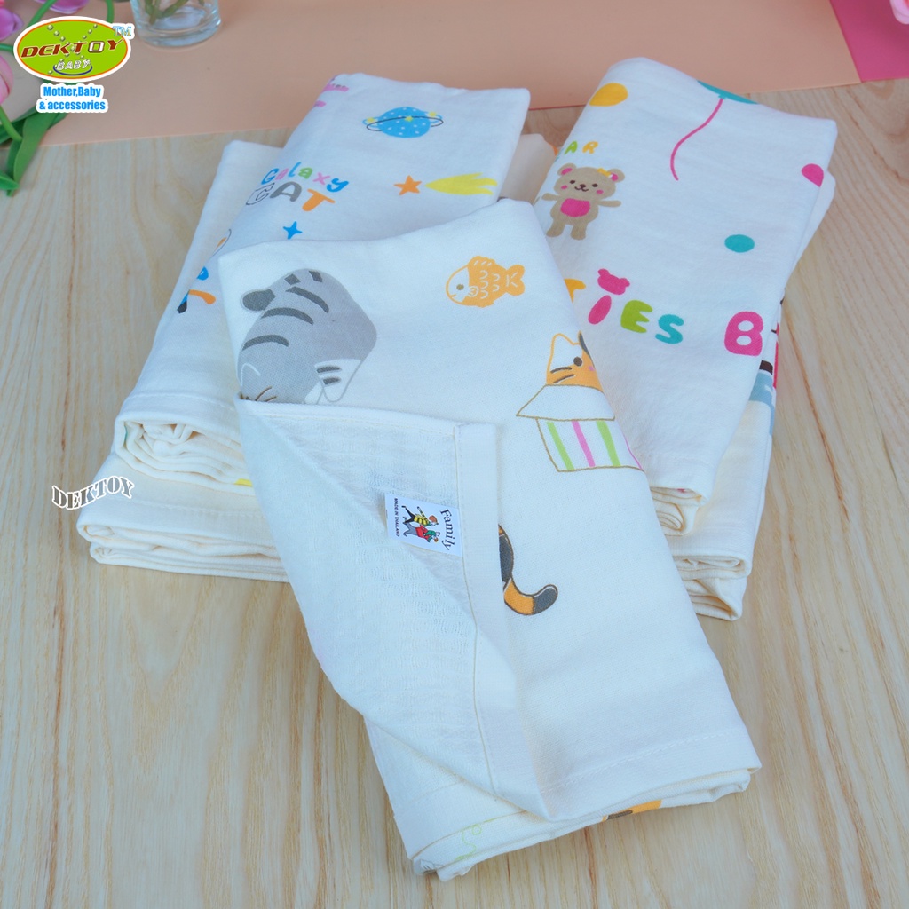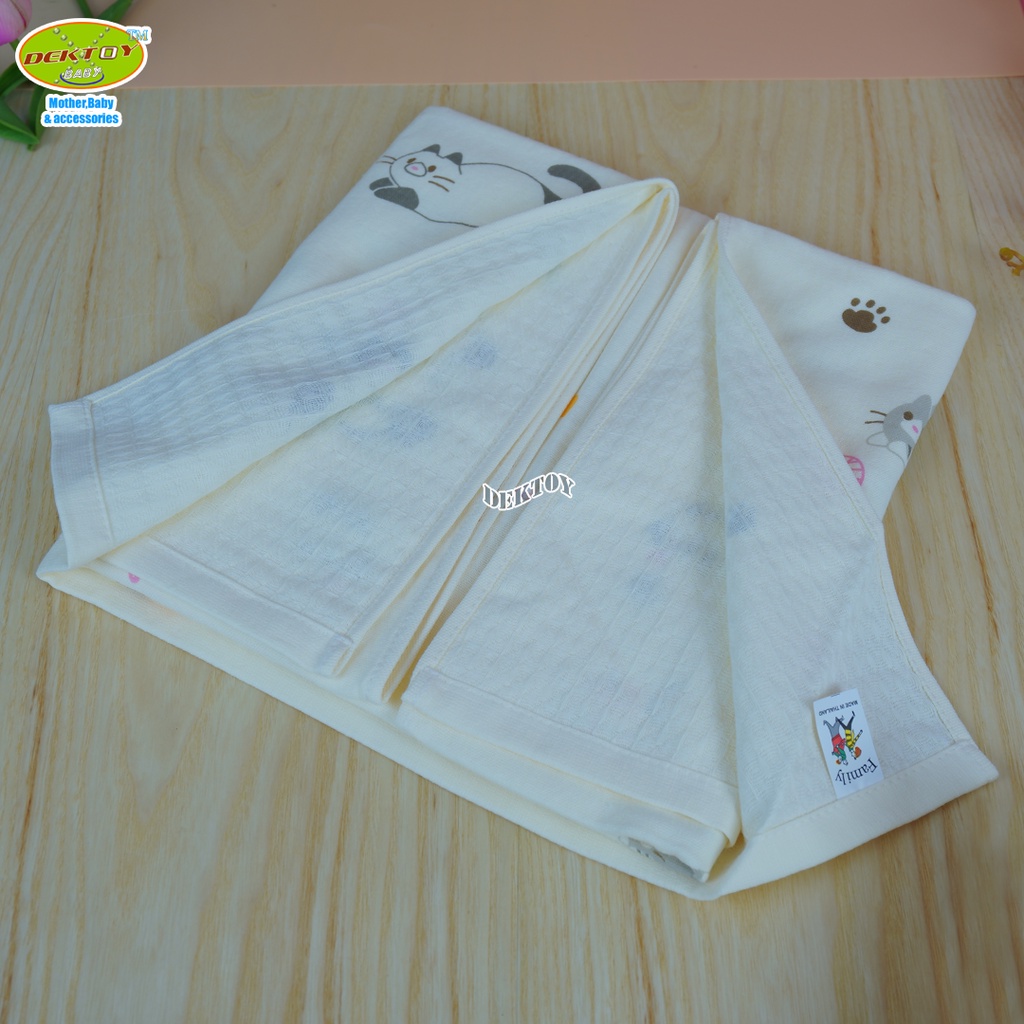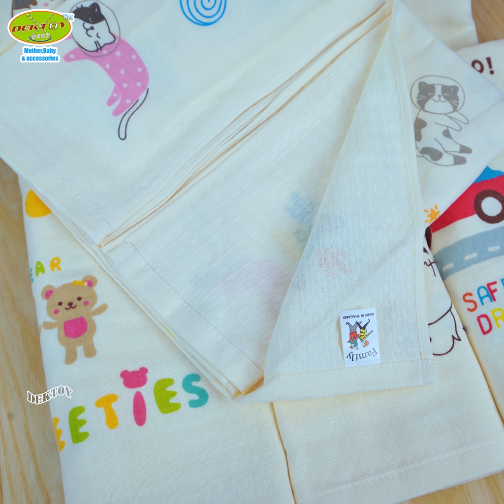 Family ผ้าเช็ดตัวเด็ก2หน้า ผ้าสาลู ผ้ารังผึ้ง ไซส์ 60 x 120 ซม.