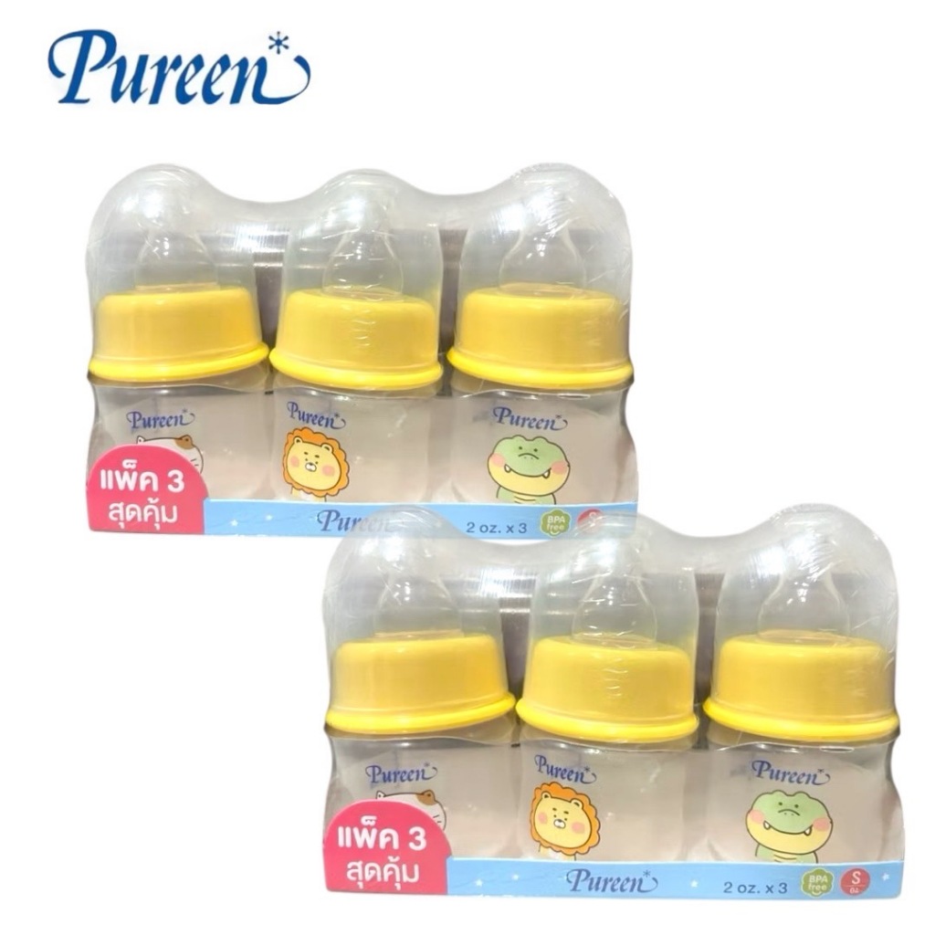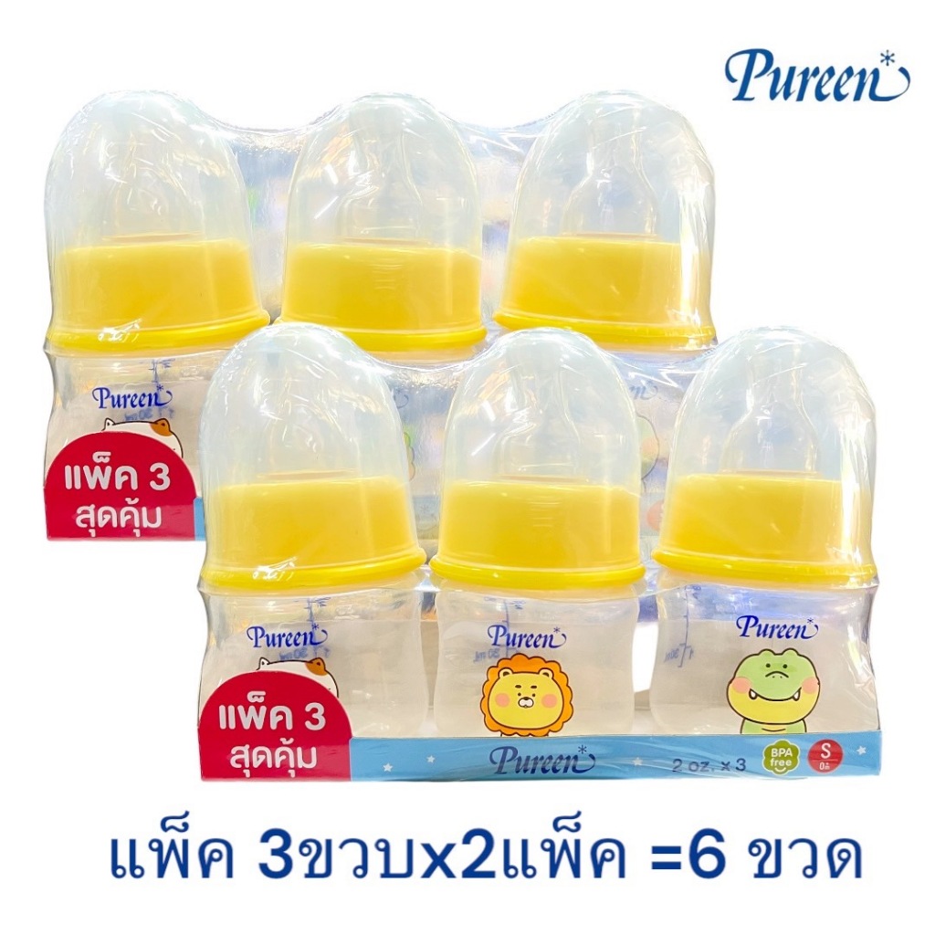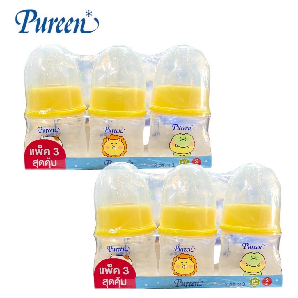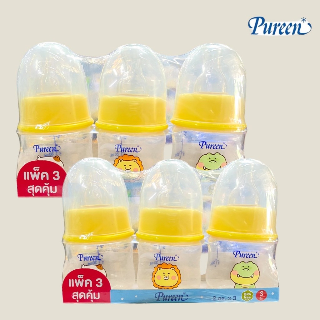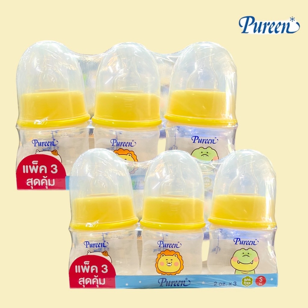 (แพ็ค 3 ขวดx2=6ขวด) Pureen ขวดนมคอแคบ PP ขนาด 2 Oz. แถมฟรีจุกนมซิลิโคน Size S พร้อมส่งค่ะ