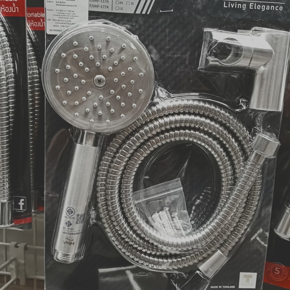 GlobalHouse VRH ชุดฝักบัวสายอ่อนสแตนเลส 1 ระดับขนาด 4 นิ้ว สเตนเลส 304 รุ่น FJVHF-120ADS สีซาติน สินค้าของแท้คุณภาพดี