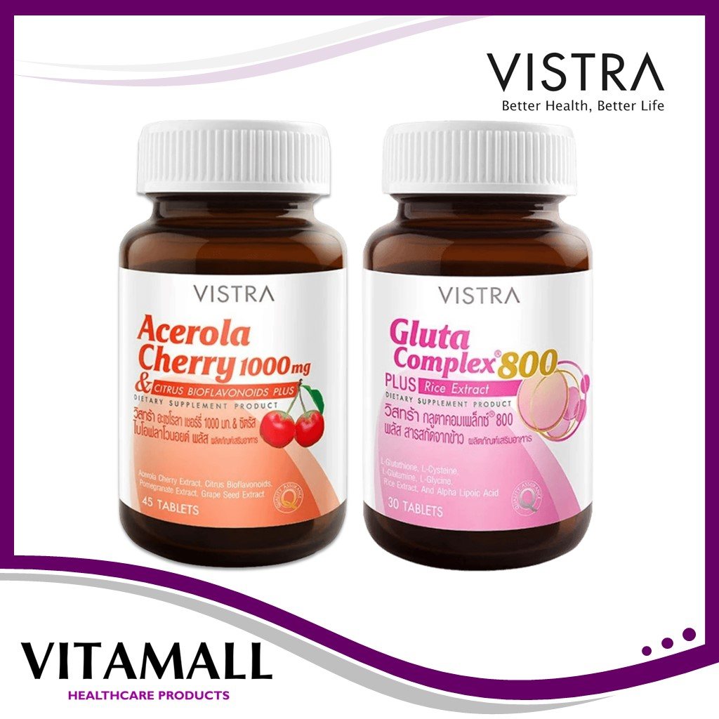 Vistra set ผิวสวย Acerola cherry 45s + Gluta 800 30s วิสตร้า บำรุงผิว ลดริ้วรอยของผิว
