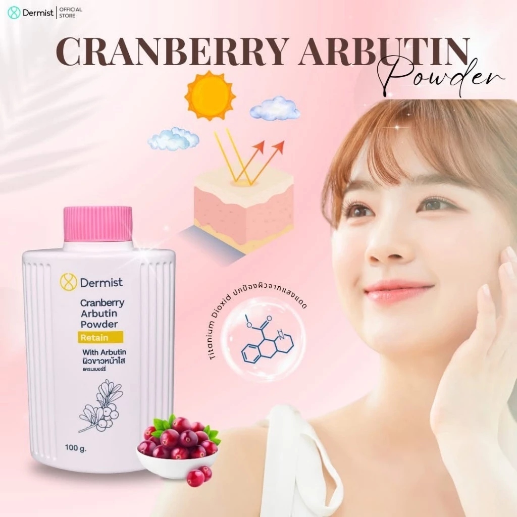 (1 ขวด) Dermist Cranberry Arbutin Powder เอร์มิสท์ แครนเบอร์รี่ อาบูติน พาวเดอร์ (25g./50g./100g.)