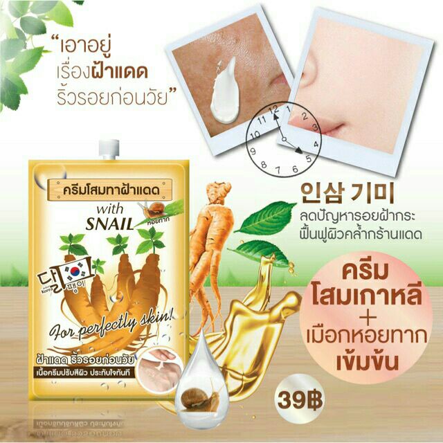 [♥️แท้/1กล่อง6ซอง]ครีมโสมทาฝ้าแดด ฟูจิ จินเสง วิท สเนล ครีม ลดฝ้า กระ และริ้วรอยบนใบหน้า FUJI GINSENG WITH SNAIL CREAM