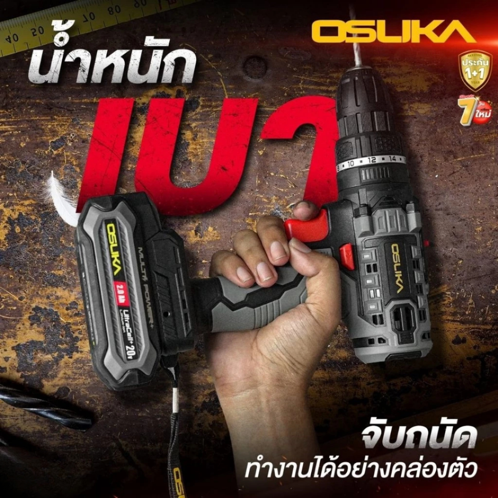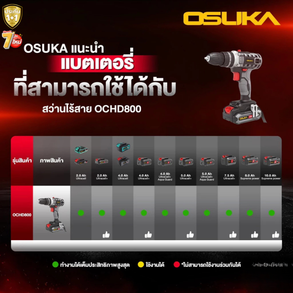 OSUKA สว่านกระแทกไร้สาย 20v OCHD800-D1 แรงบิดสูงสุด 38 Nm แรง ทน คุ้ม ประกันศูนย์ไทย 1 ปี