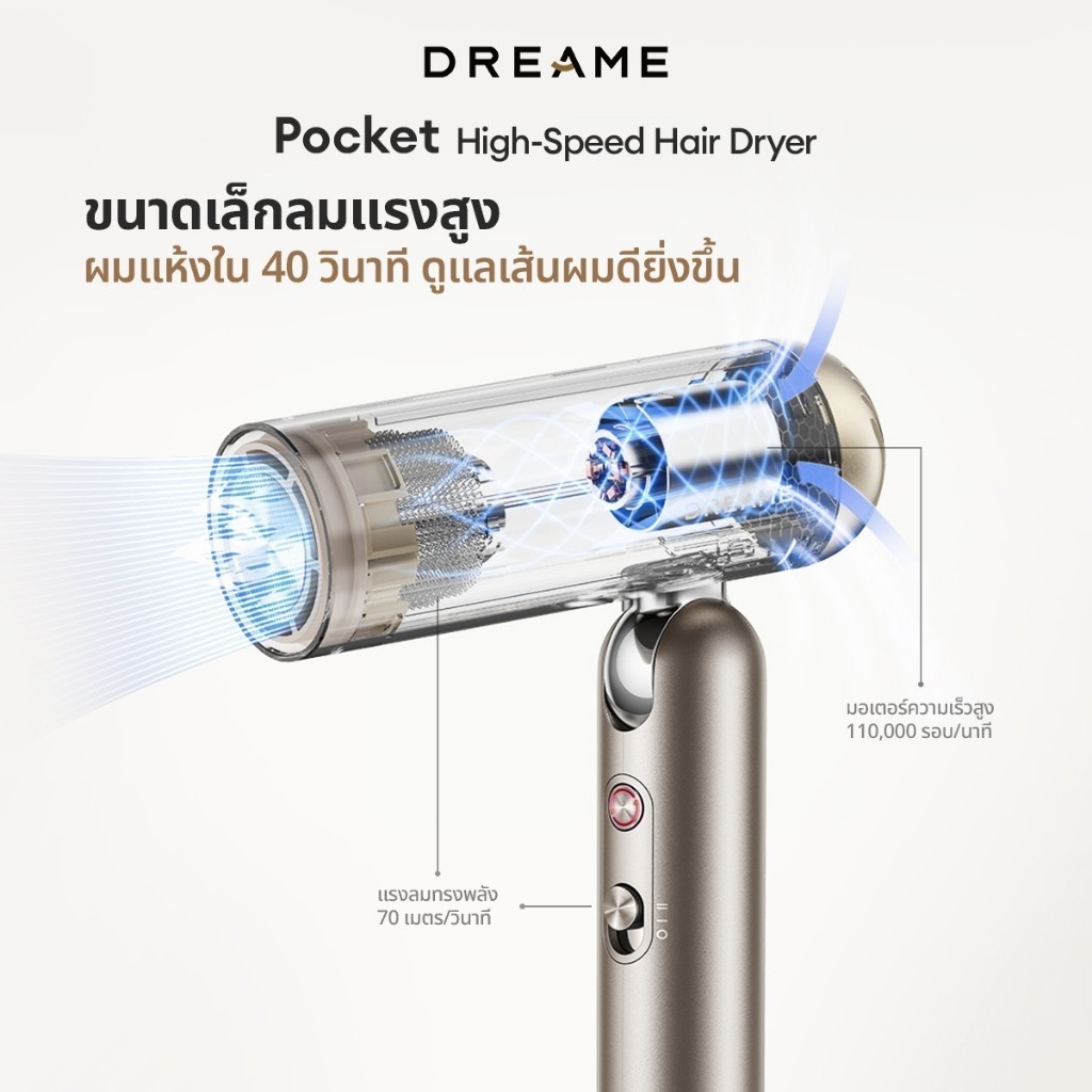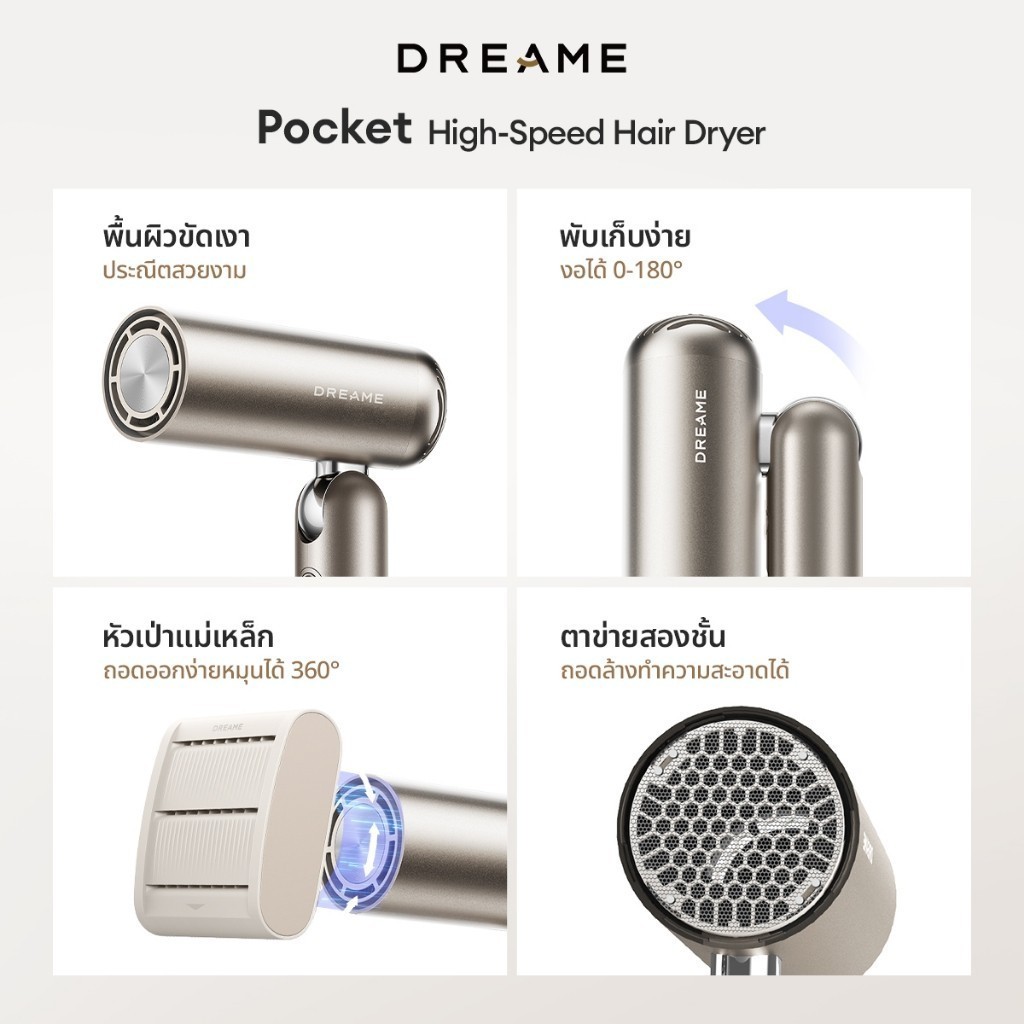 [NEW] Dreame Pocket High-Speed Hair Dryer ไดร์เป่าผม ความเร็วสูง 60dB พับได้ พกง่าย เป่าแห้งไว เปลี่ยนทรงได้