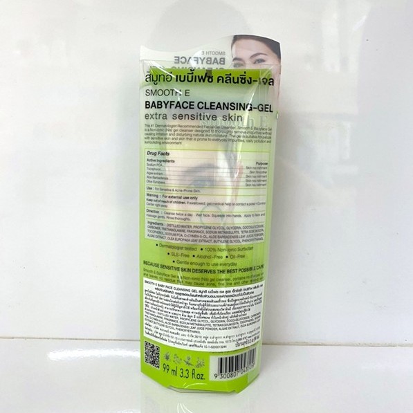 Smooth E Babyface Gel เจลล้างหน้า สูตรไม่มีฟอง100% เหมาะกับผู้ที่มีผิว บอบบางแพ้ง่าย ไม่มีประจุไฟฟ้า ไม่ทิ้งสารตกค้าง