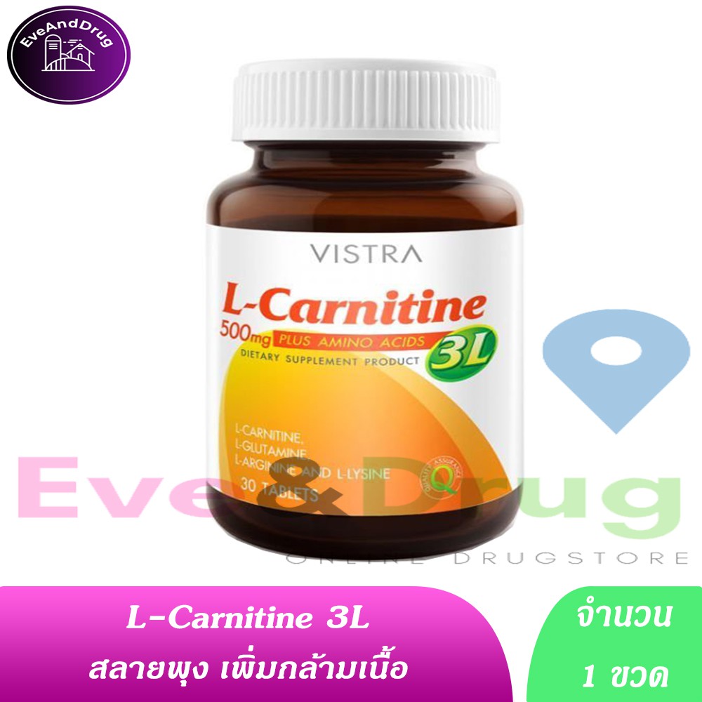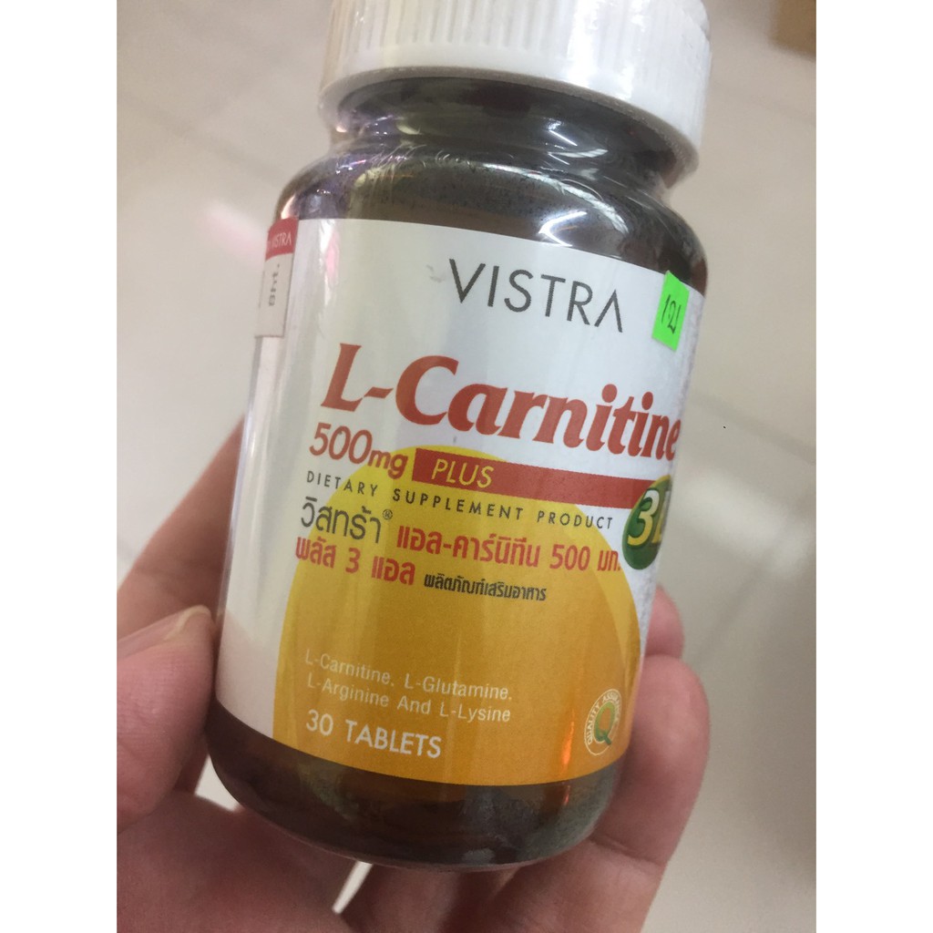 Vistra L-Carnitine 500 mg Plus 3L 30เม็ด ( 1 ขวด) วิสทร้า 30 tablets ตรวจนานมาก