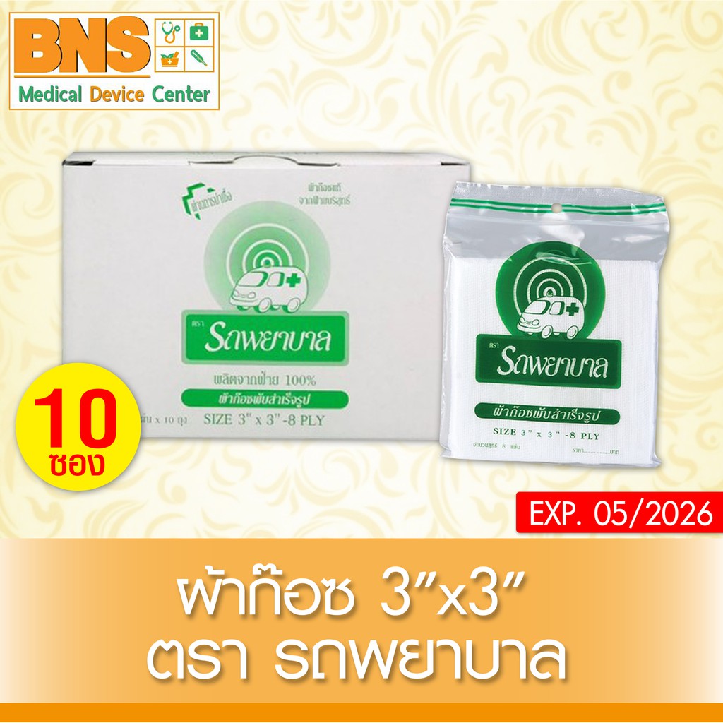 ส่งเร็ว !! ( 1 กล่อง มี 10 ซอง ) รถพยาบาล gauze ผ้าก๊อซ 3x3 นิ้ว (สินค้าขายดี)(ถูกที่สุด)