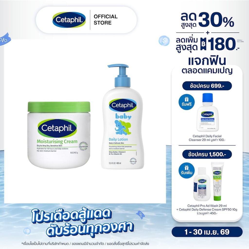 [เซตสุดคุ้ม] Cetaphil Baby Daily Lotion 400 ml. + เซตาฟิล มอยส์เจอไรส์ซิ่ง ครีม 453 กรัม (แพ็คเกจใหม่)