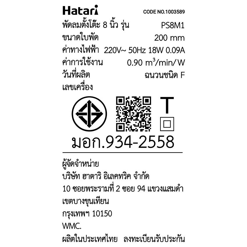 ฮาตาริ พัดลมไซโคลน ขนาด 8 นิ้ว (คละสี) รุ่น PS8M1 HATARI CYCLONE FAN 8 INCH (ASSORTED COLORS) MODEL PS8M1