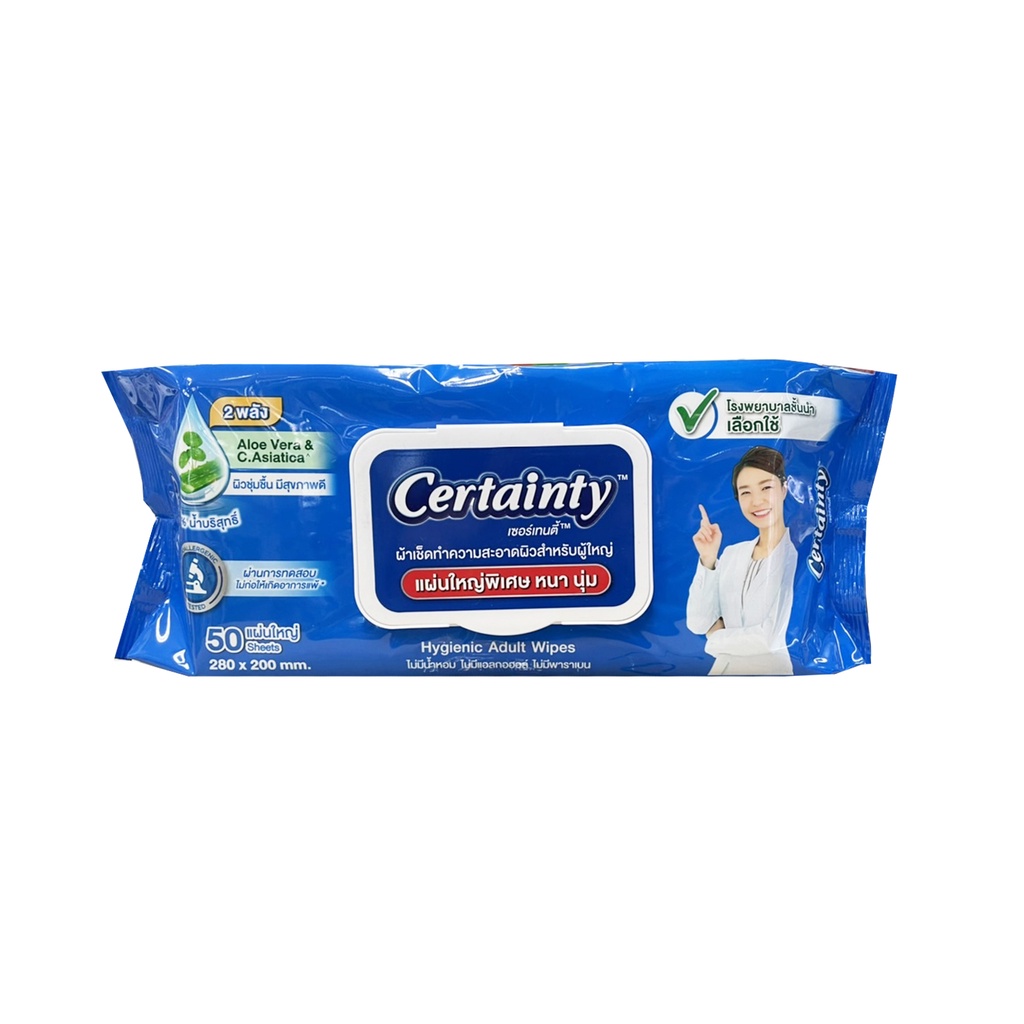 ส่งเร็ว !! ( แพ็ค 3 ห่อ ) Certainty wipes เซอร์เทนตี้ ทิชชู่เปียก ผ้าทำความสะอาด 50 แผ่น/ห่อ (ถูกที่สุด)