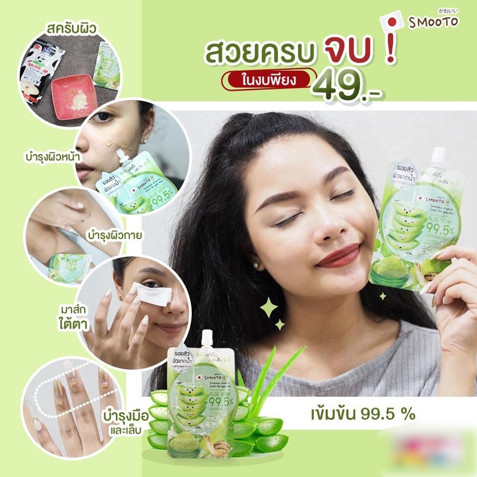 Smooto Aloe-E Snail Bright Gel 99.5% สมูทโตะ อโล-อี สเนล ไบรท์ เจล 50กรัม
